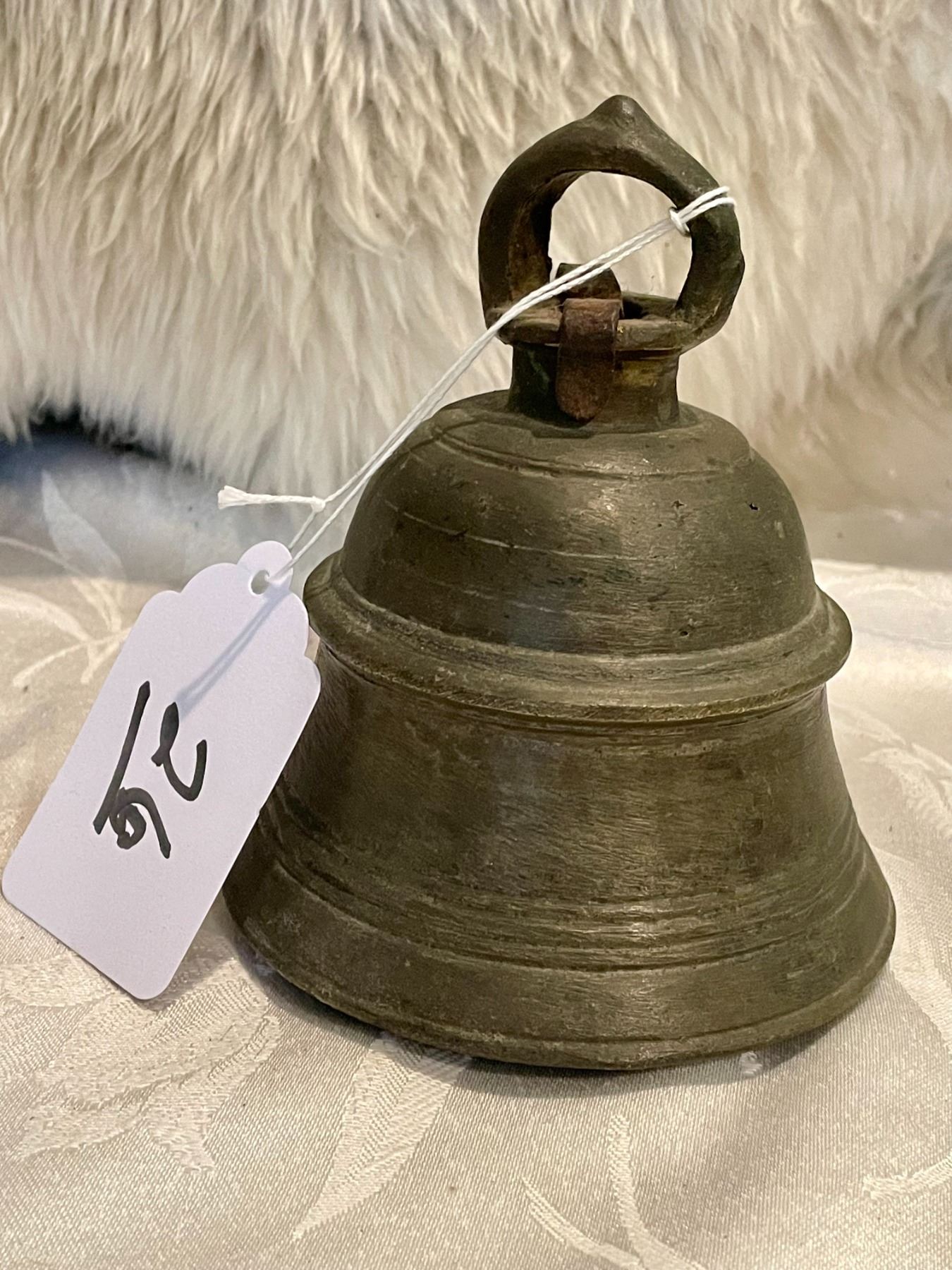 An antique African bronze bell offered in the auction is a finely crafted ceremonial piece, featuring intricate tribal engravings and a rich patina indicative of its historical and cultural significance.