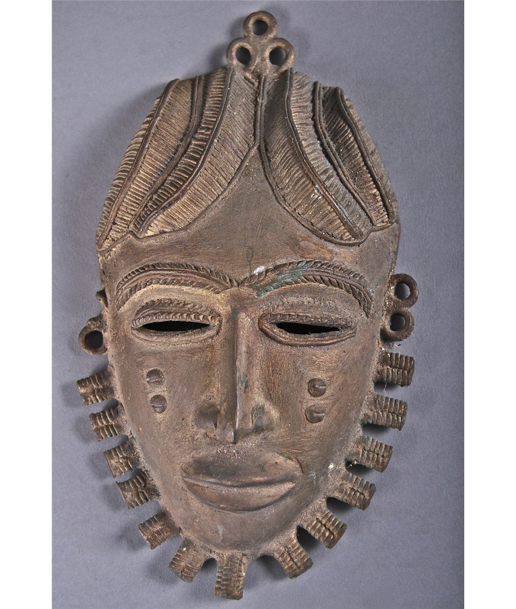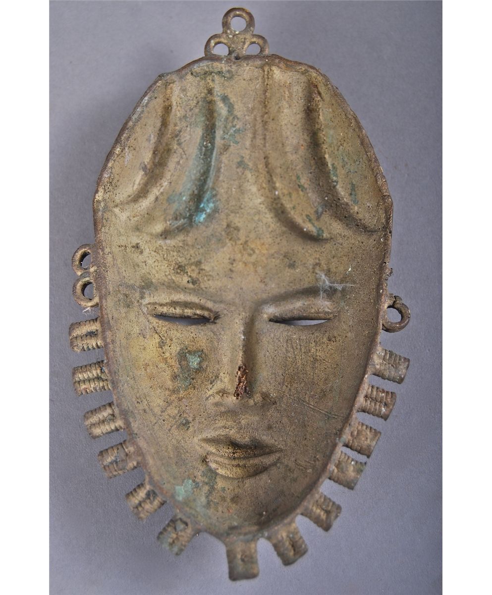 Antique African Bronze Mask. [Height/Length (in)= 8.25, Width (in)=5, Depth (in)=2, Weight (lbs)=1.5] With Pangaea Auctions C.O.A. Go to: www.pangaea-auctions.com for more information about this collection.