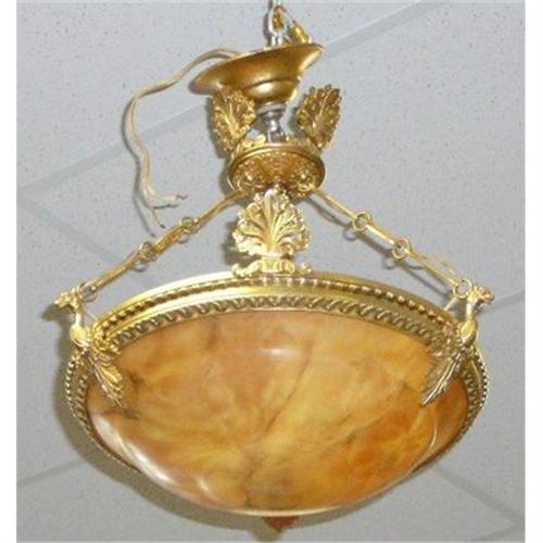 <tr><td>Title:Antique Alabaster and Bronze Chandelier Fixture</td></tr>