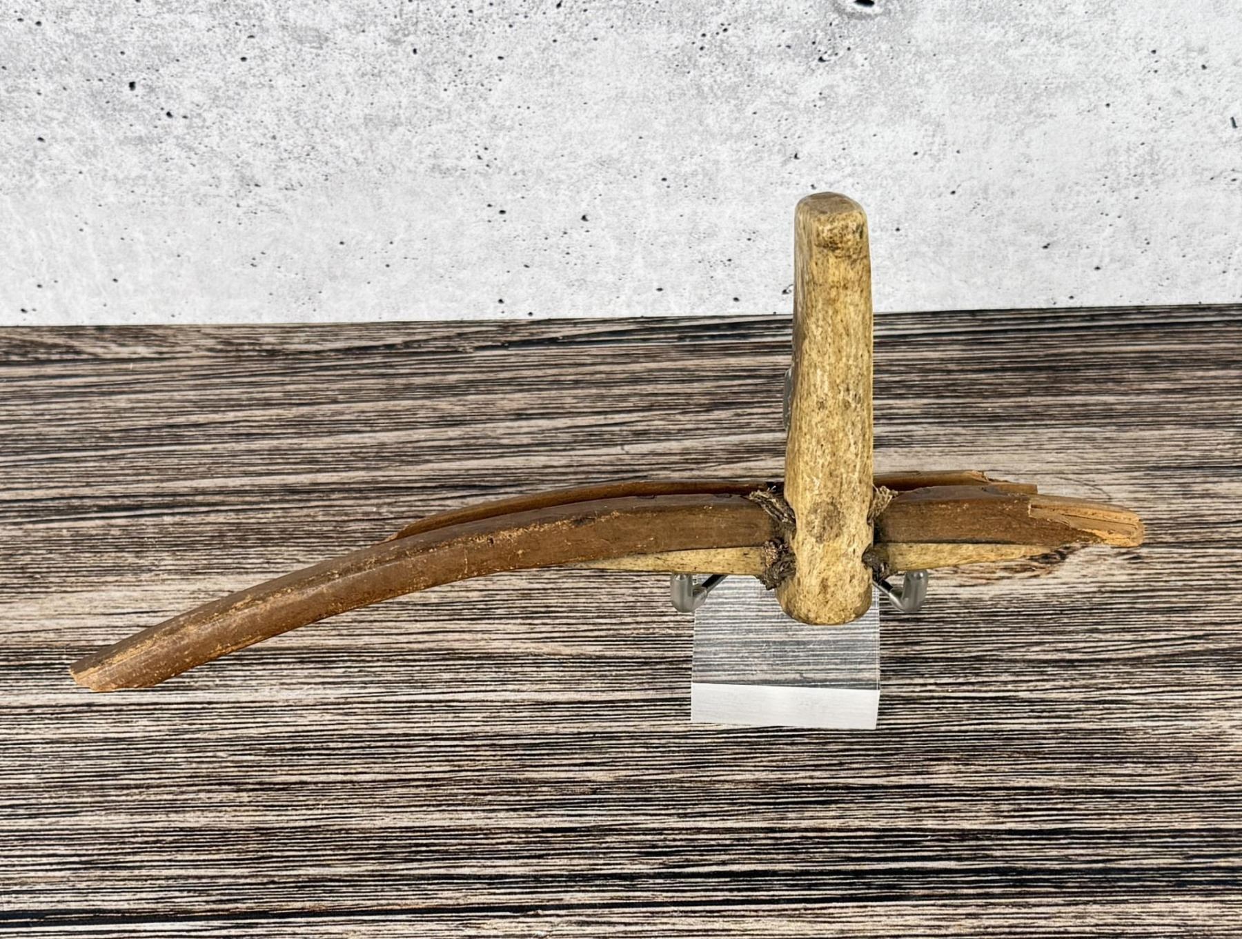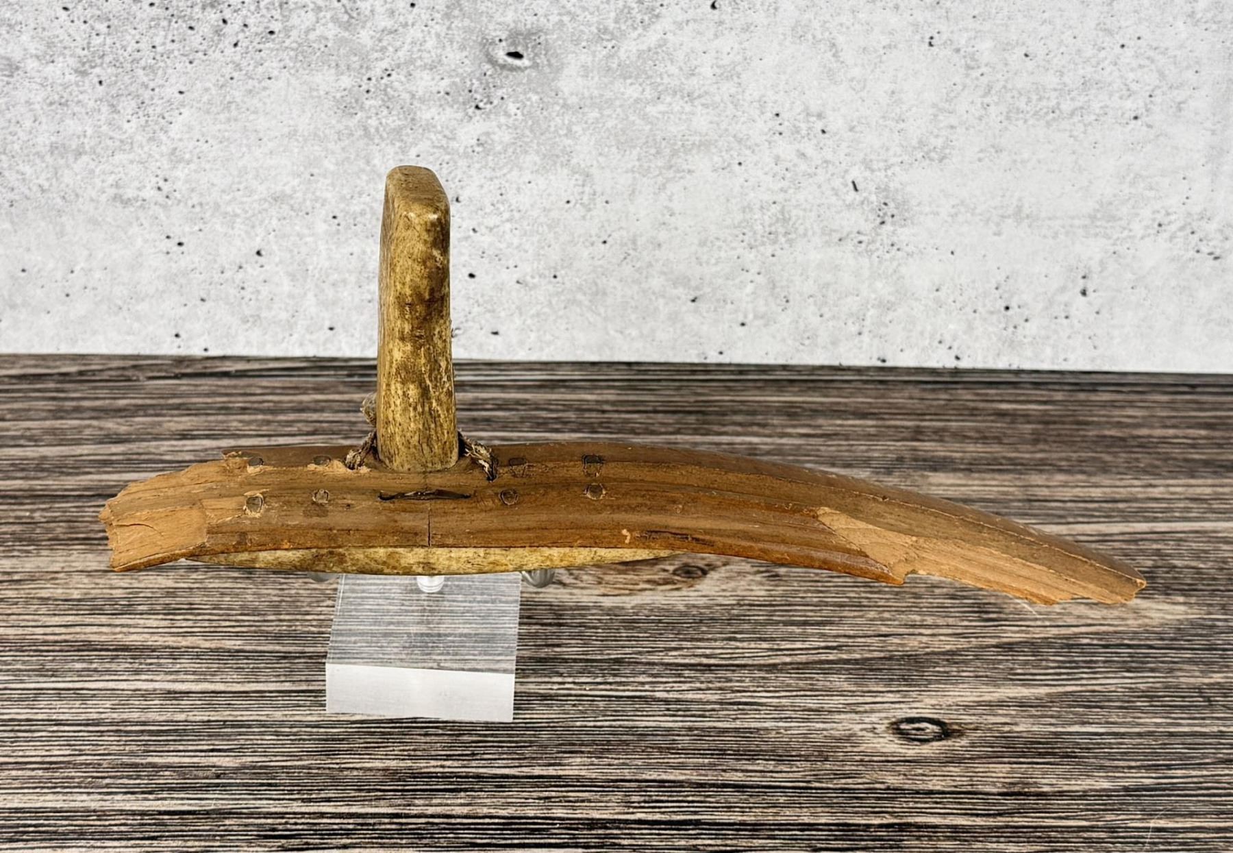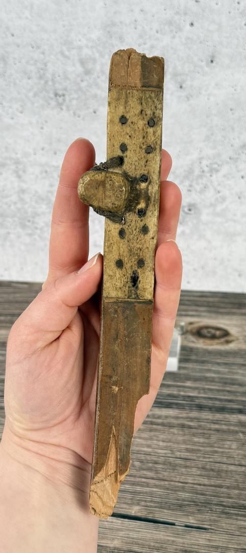 8 1/2" by 3 1/4". Used for tying off harpoon line on the bow of a boat. Has a channel for the line. Quite unusual.