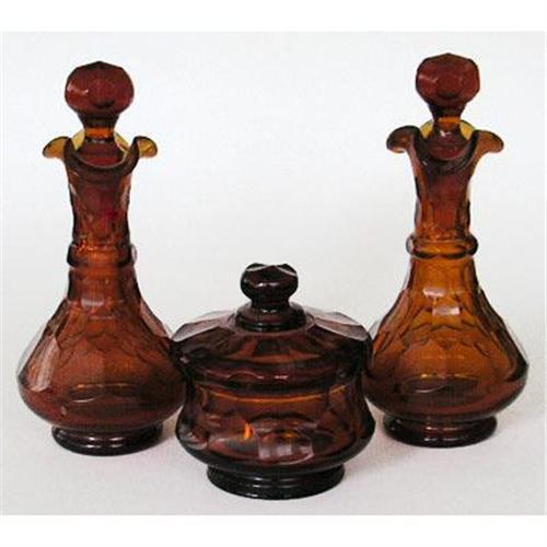 <tr><td>Title:Antique Amber Pressed Glass Perfume Bottle Set</td></tr>