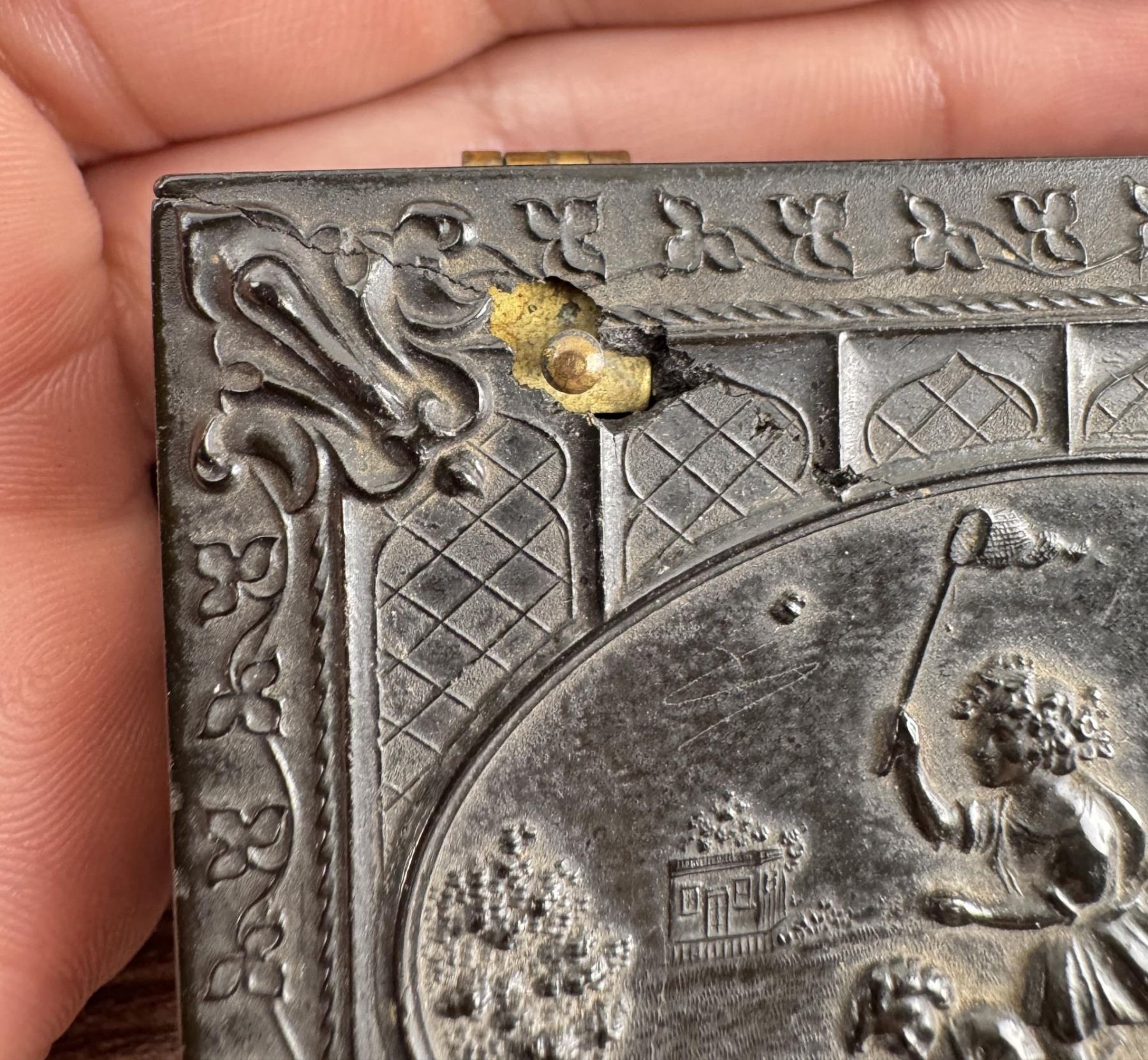 Housed in a The Girl Chasing The Butterfly thermoplastic case. 3" by 2 1/2" in case.