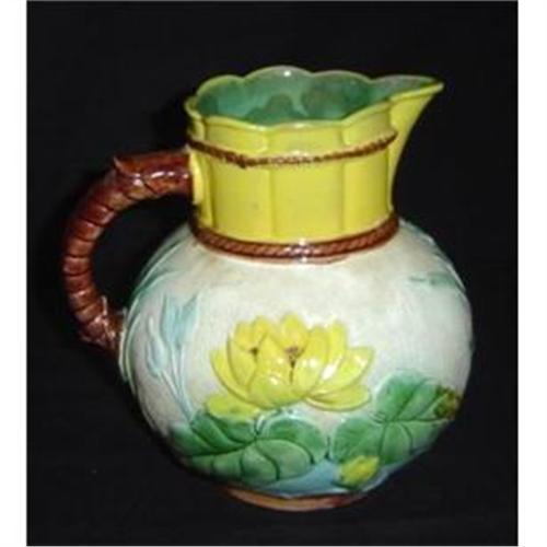 Antique American Majolica Large Lilly Flower and Pad Pitcher. In excellent condition.