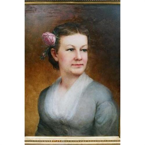 </font></strong> Great old N.Y. area Victorian original oil portrait on artist board of attractive lady with rose in her hair. Professionally cleaned and restored by Boy Dixie Arts & Restoration of Roswell, Ga. Period gilt gesso and wood frame is probably original to the painting; two small areas of amateur repair on frame surface, but overall a nice complete package--ready to hang and enjoy...Original art supply house label, verso with N.Y. address. A pleasant American historical artifact and guaranteed to be antique! Thanks for looking, Chas.</font>