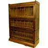 Antique American oak stacking bookcase three section by Weis Co. with nice quarter sawn grain and leaded glass fronts. Measeures 43" X 34".