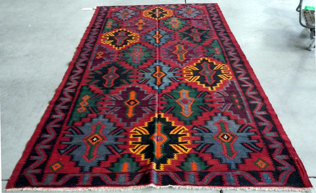 Antique Anatolian Kuba Kilim Rug Originated from the Caucasus Mountains Circa 1890-1900. Anatolia is the geographic historical term noting the Western most protrusion of Asian comprising the majority of the Republic of Turkey. Perhaps the best known and highly regarded rugs are from this region and are of traditional Hand Woven 100% Wool and all Natural Vegetable Dyes. Tightly Woven. 600 Threads Per Square Inch. Size is 5.7'x10.4'