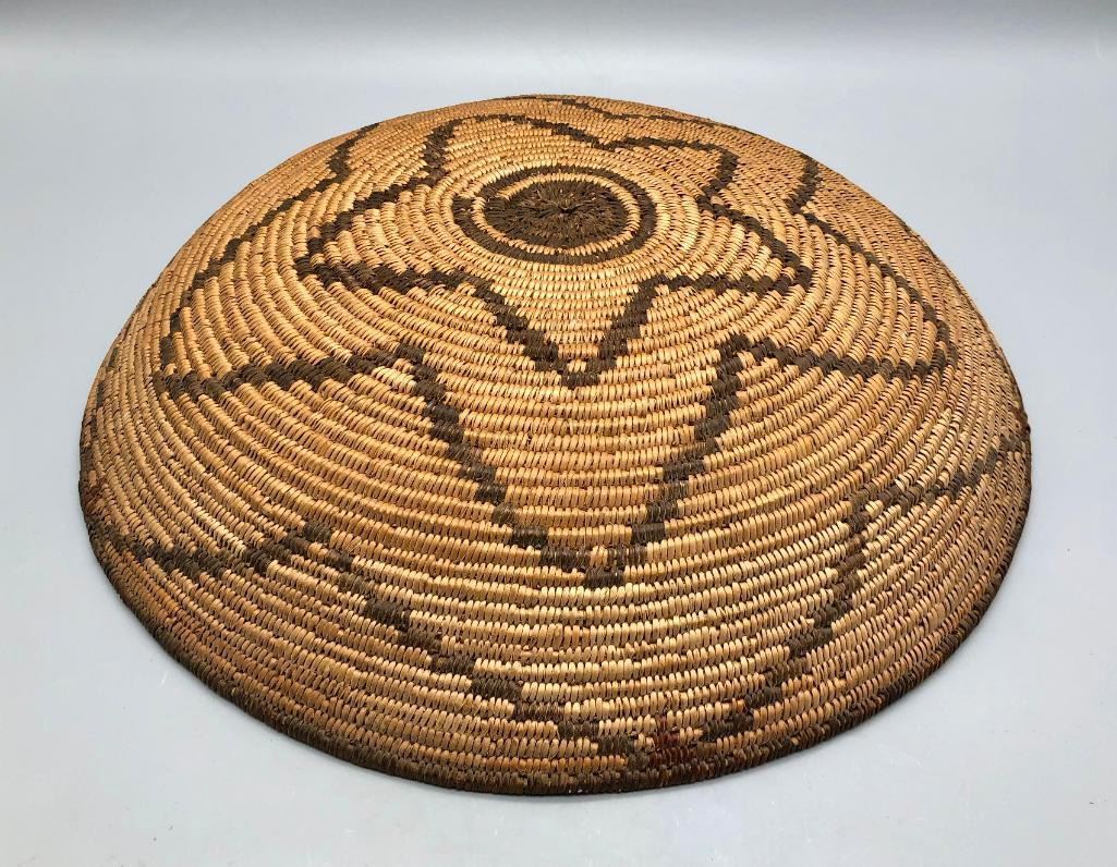 Up for consideration in this lot is a very nice antique Apache basket. It has a multiple star design on it. Made from willow and devil's claw. The Apache are known as superior basket makers and these older baskets are highly sought after. MAKER: Unknown Apache weaver. APPROX AGE: C. 1900 - 1920. SIZE: 14-3/4 inches wide X 3-1/4 inches deep. CONDITION: Pretty good for its age, normal wear and fading expected. Please look closely at the pictures as they are an important part of our description and are hereby incorporated into the description, specifically with regards to condition. SHIPPING: There will be a $5 handling / packaging fee for shipping this lot. The actual cost of postage will be added on top of that. BUY IT NOW: If you would like to buy this item now, without waiting for the auction day to bid on it, we do offer this option (which is available up to 48 hours before the actual auction starts). The “Buy it Now” price is the high estimate of this lot (plus applicable fees and the Buyer's premium is discounted to 10% when using the Buy it Now option). If you would like to exercise this option, you must contact us by email (or phone as long as you talk to someone live). Reference this lot number and your intention to "Buy it Now."