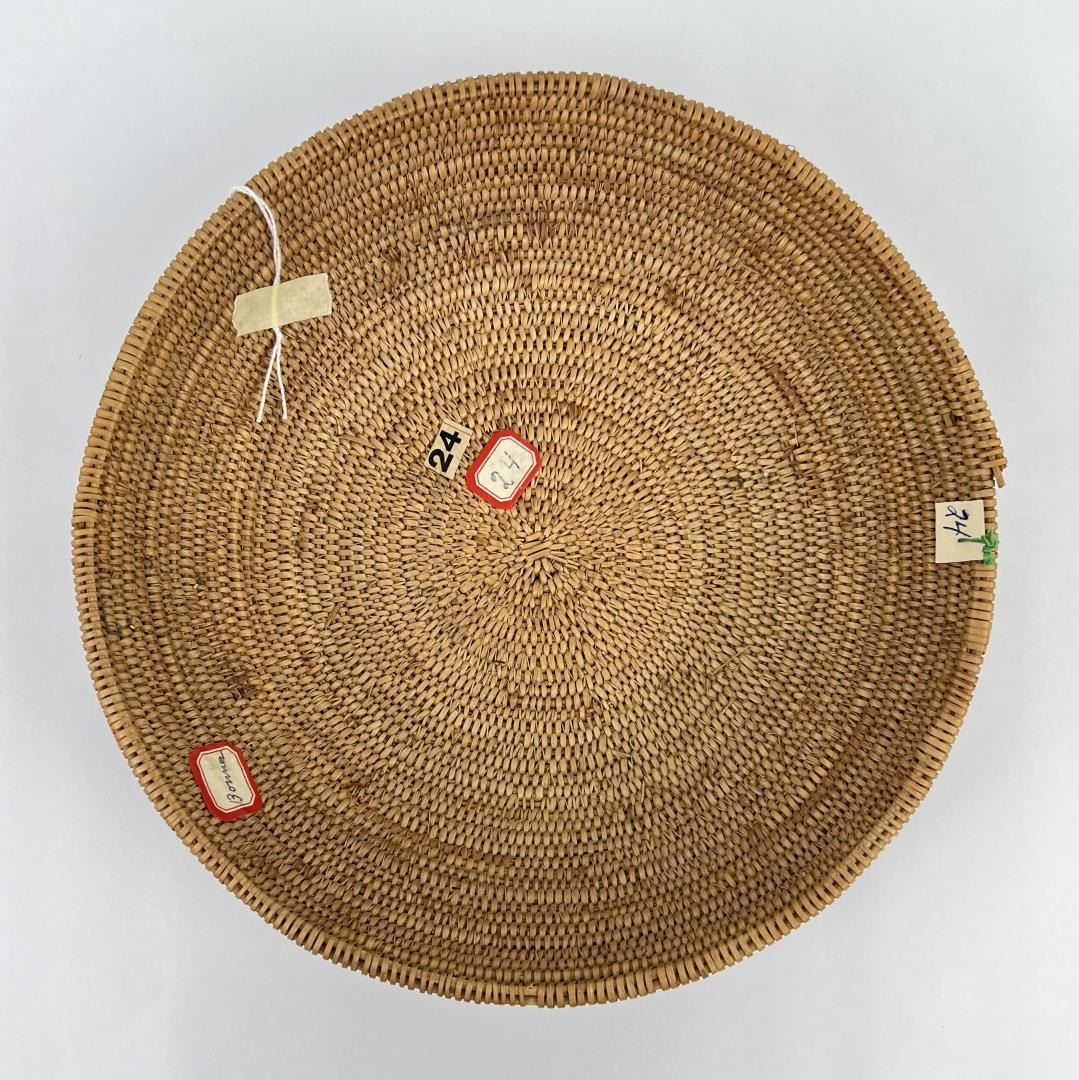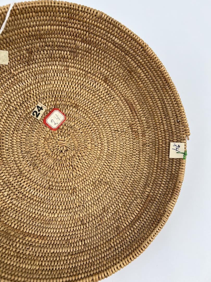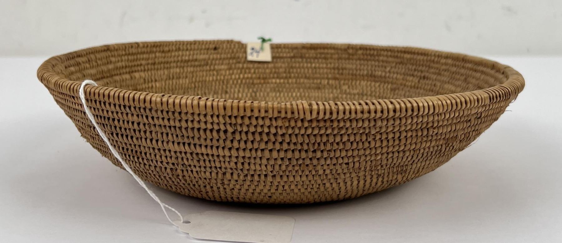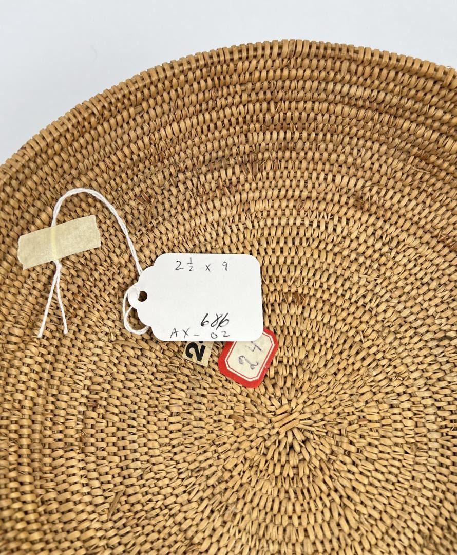 Basket has museum collection tags as shown. 9 1/8" diameter, 2 1/8" tall. Allard Auction Collection Inv: AX