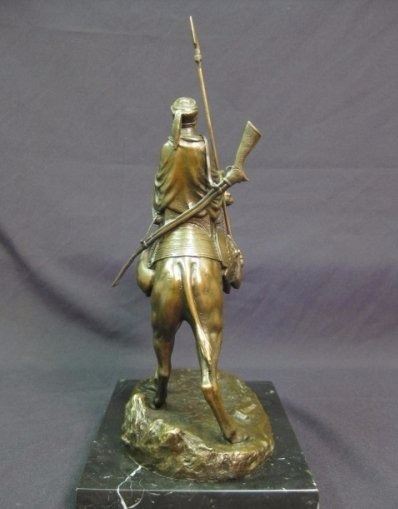 Antique Arab (Muslim) Warrior Sculpture......A stunning bronze sculpture of a bedouin warrior with spear and rifle riding his ship of the desert;Height 15.0 x Width 9.4 x Depth 6.7 inches Weight 14.3 lbs.