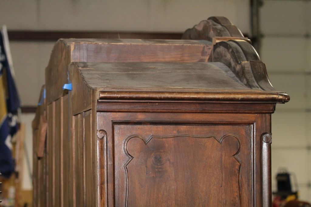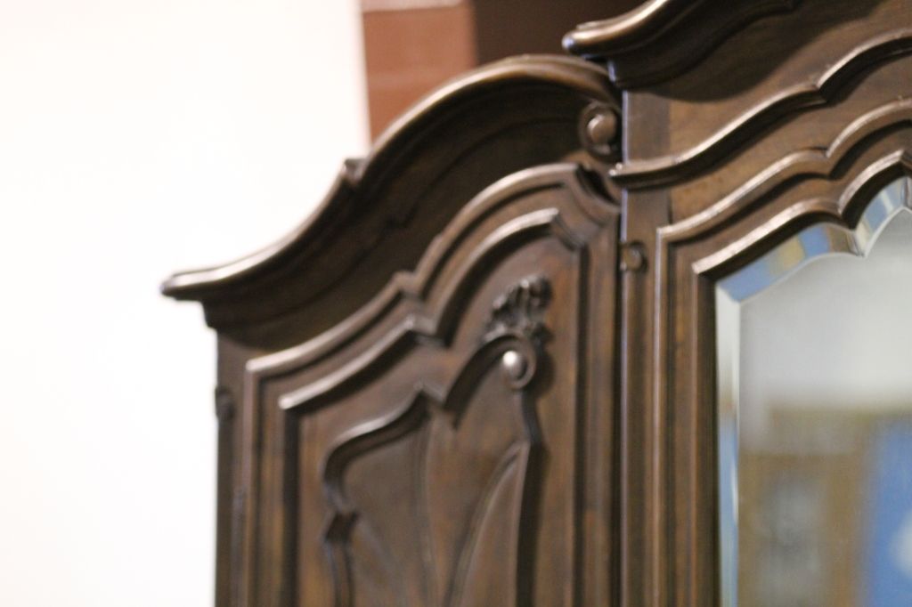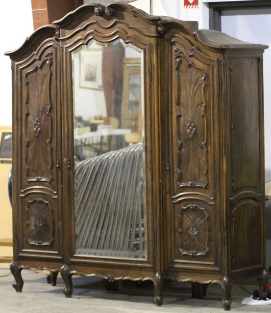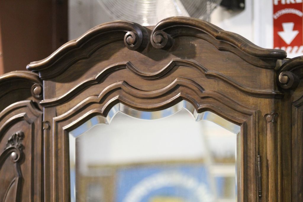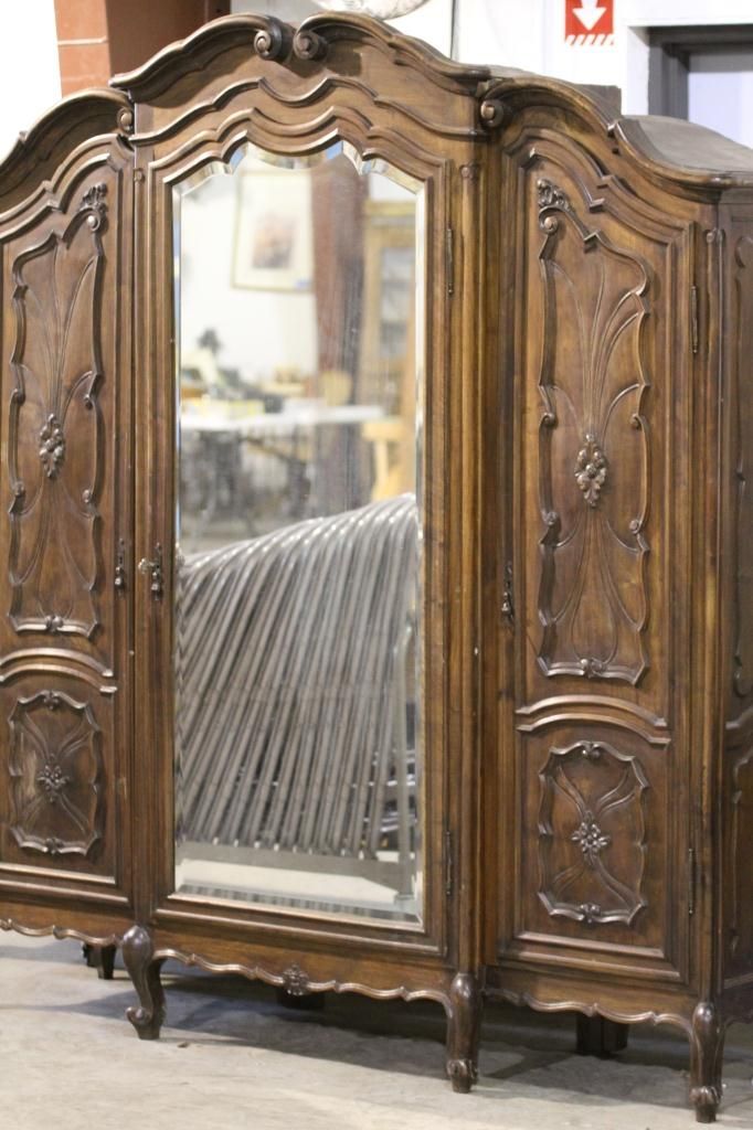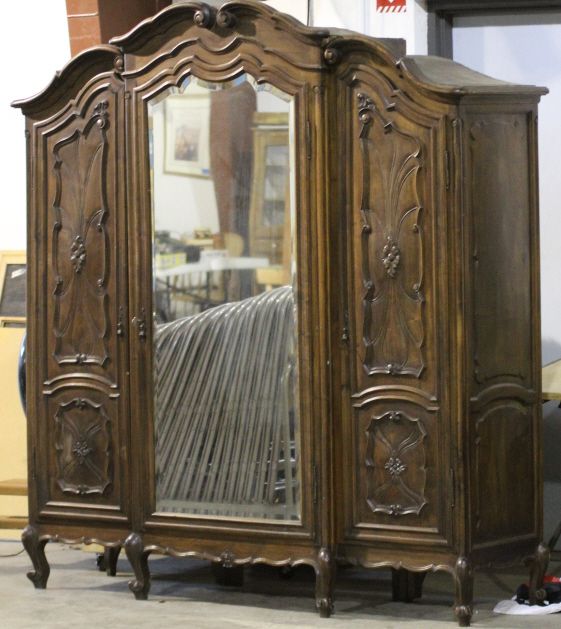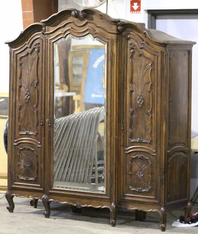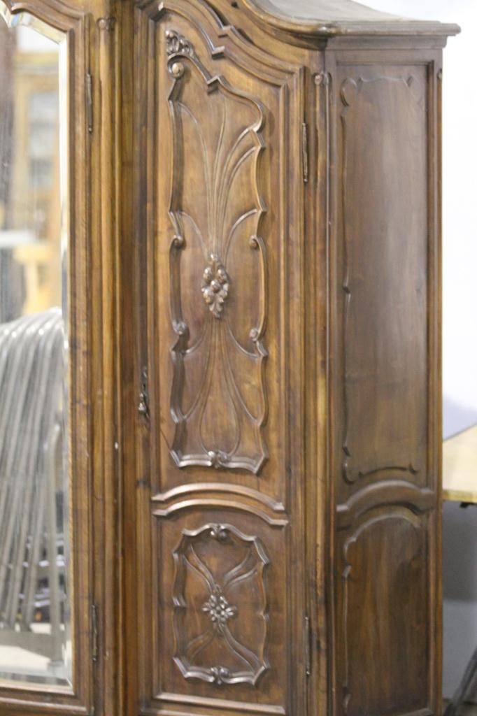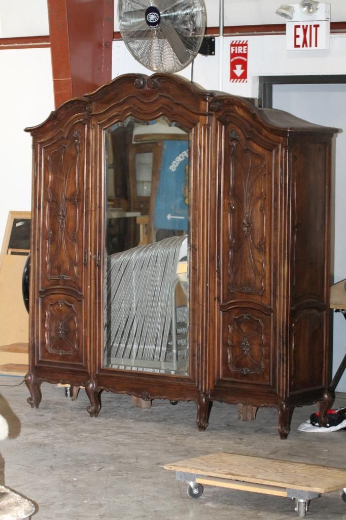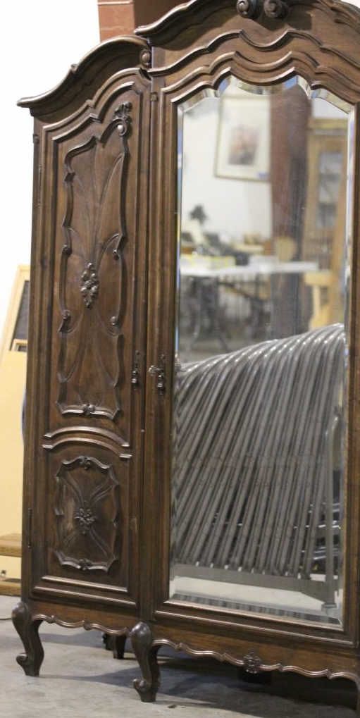 Antique Armoire This is an Exquisite piece of Antique Furniture. This Armoire comes apart into three pieces and has intricate Beveled Glass. Has the original Skeleton Key. The Owner purchased this Armoire at an Auction for $11,000. Measures 21" deep 76" long 85" tall.