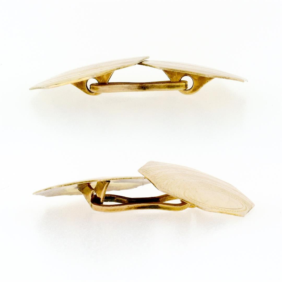 An antique art deco 14k yellow gold octagonal cufflinks. These cuff links have a linking bar design with a clearance of 17.2mm, weigh a total of 3.66 grams, and the front panels measure 14.7x15.9mm.