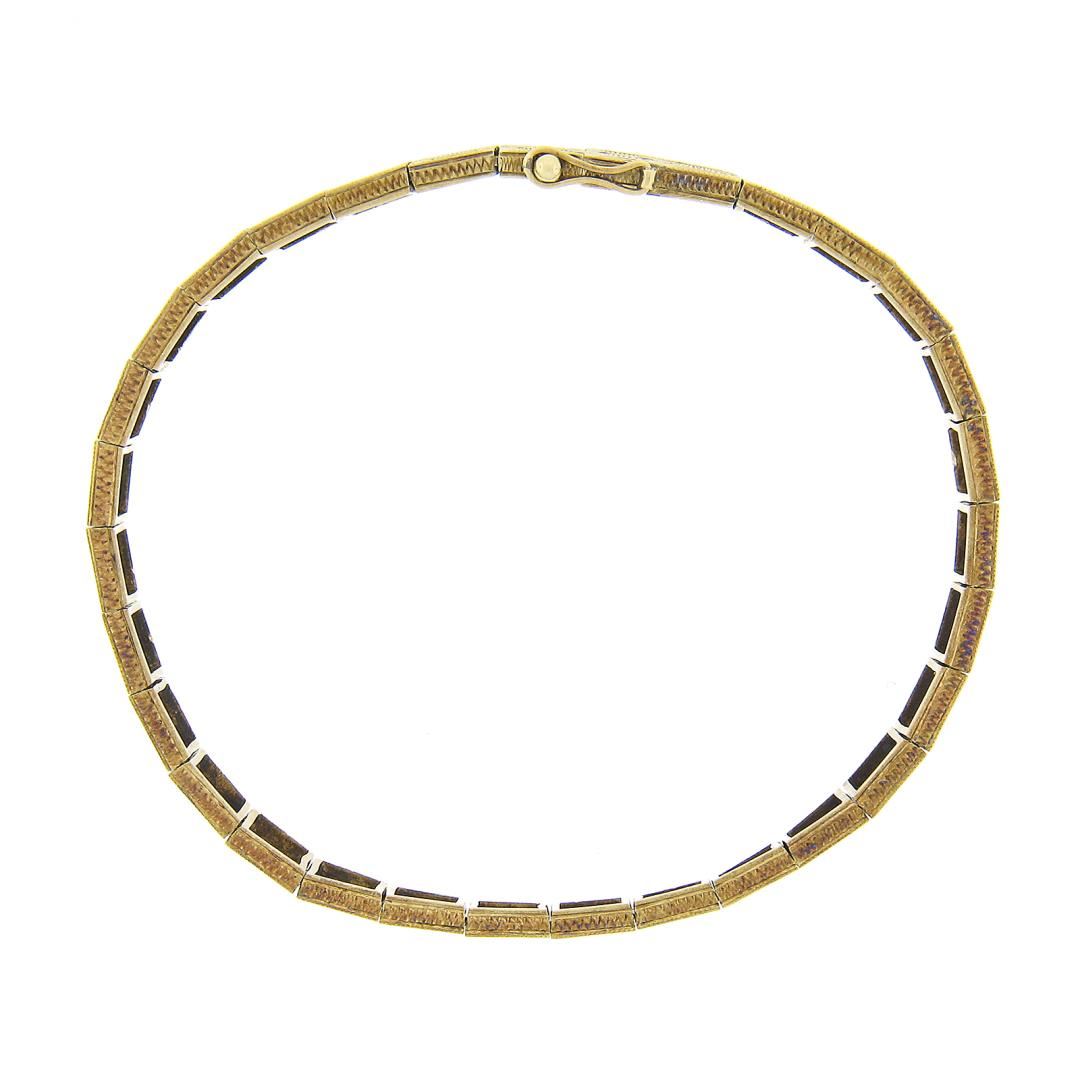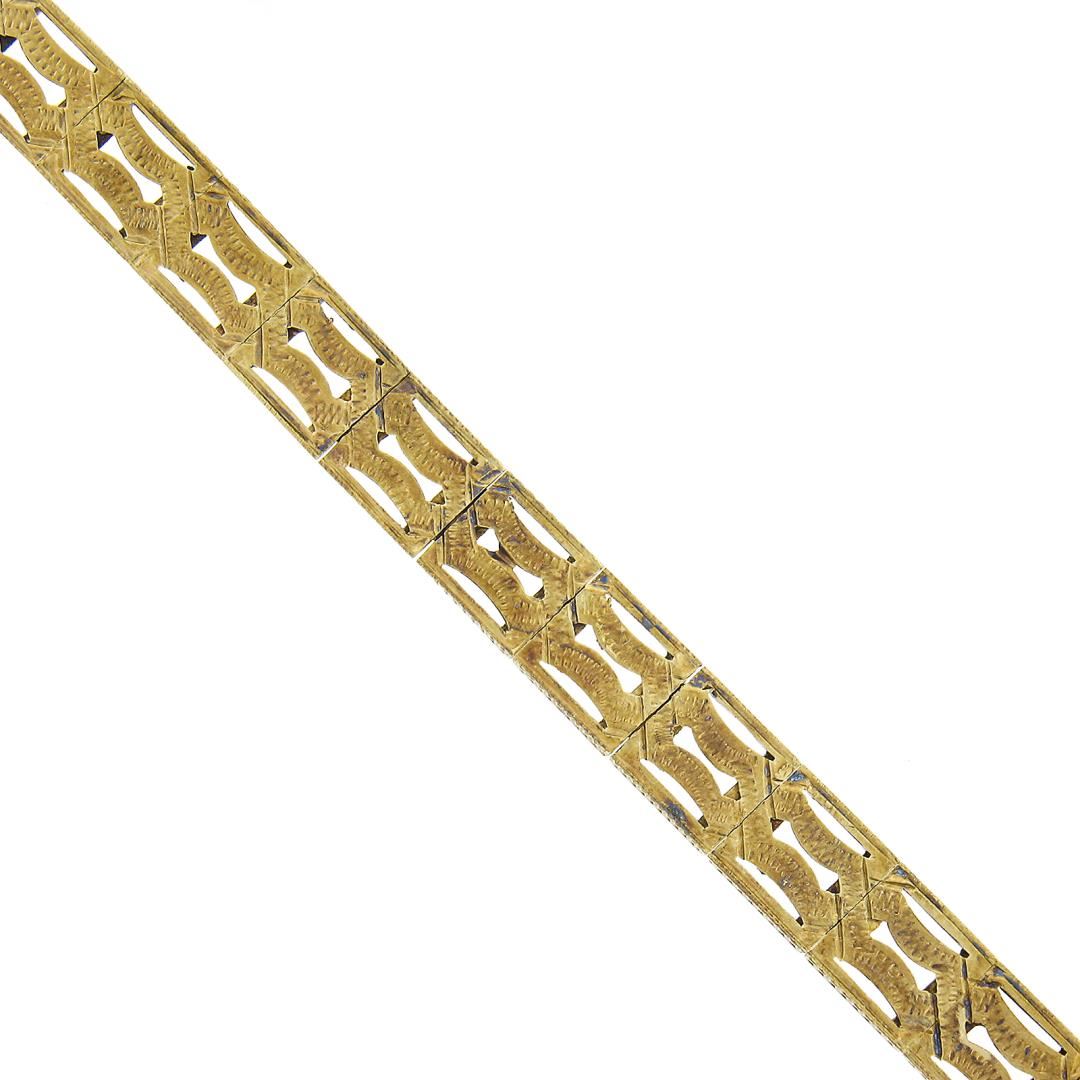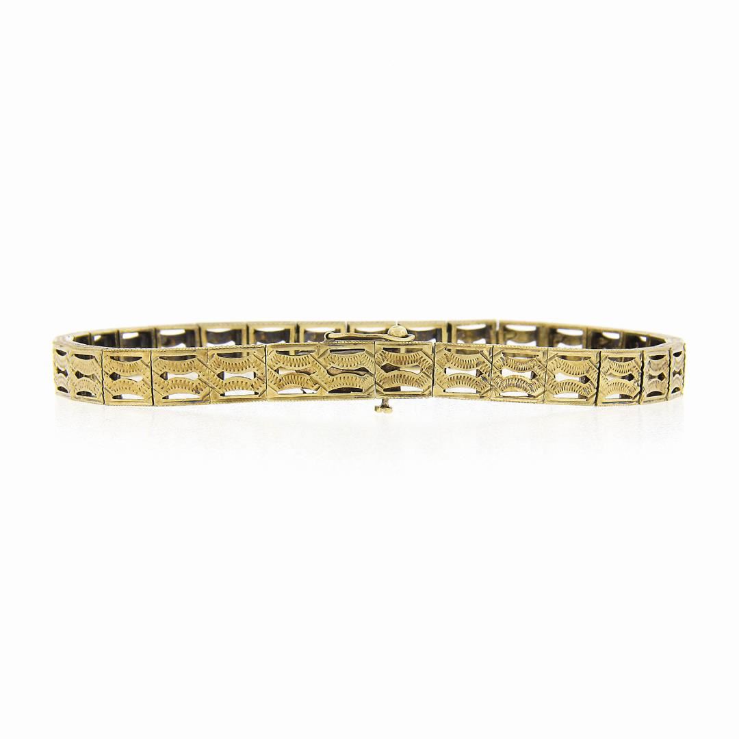 Antique Art Deco 14k Yellow Gold Long 7 Engraved Open Work Square Link Bracelet
