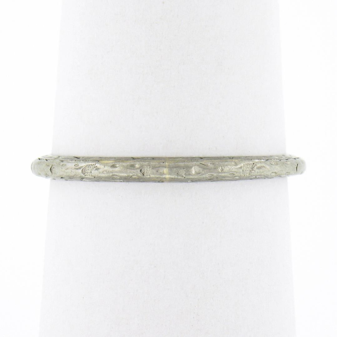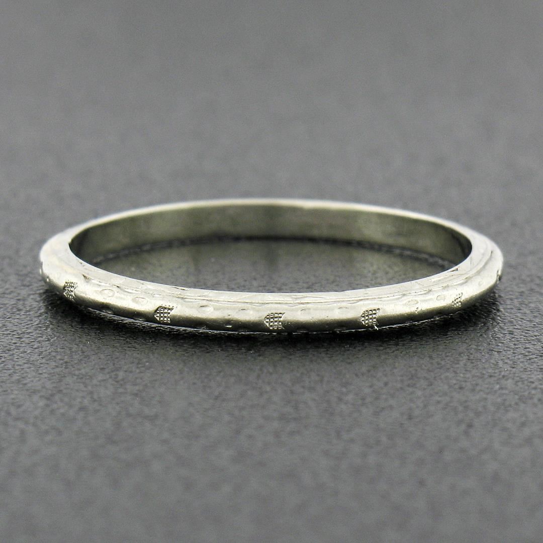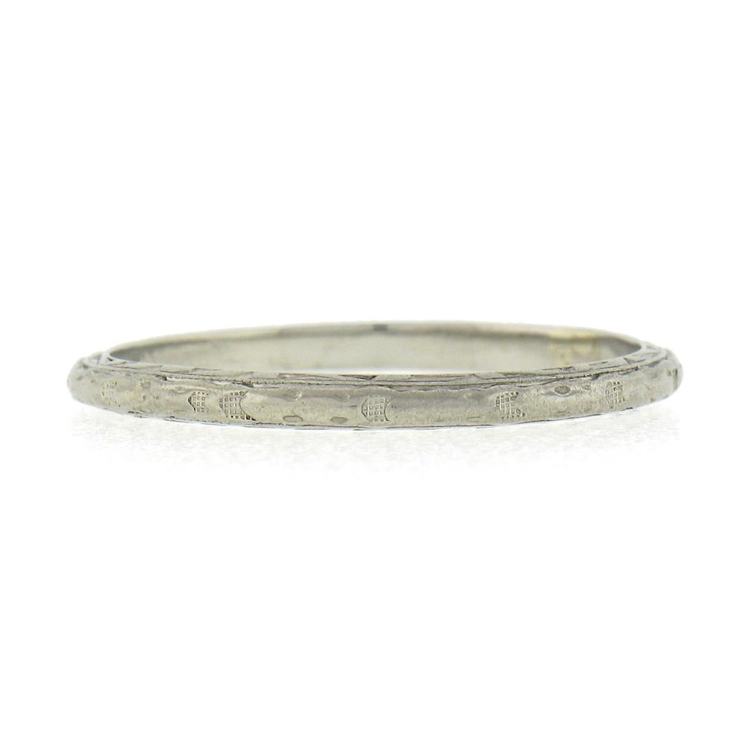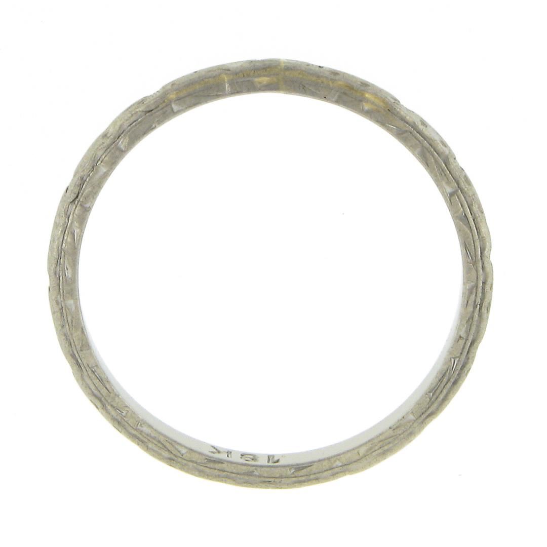 An antique solid 18k white gold textured band ring. The ring is size 6.5, weighs a total of 1.48 grams, and measures 1.75mm wide.