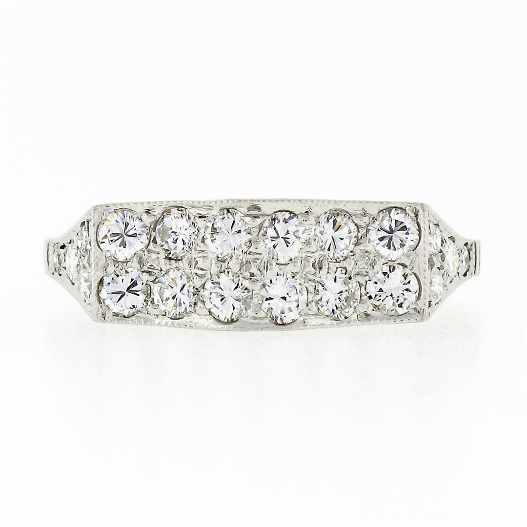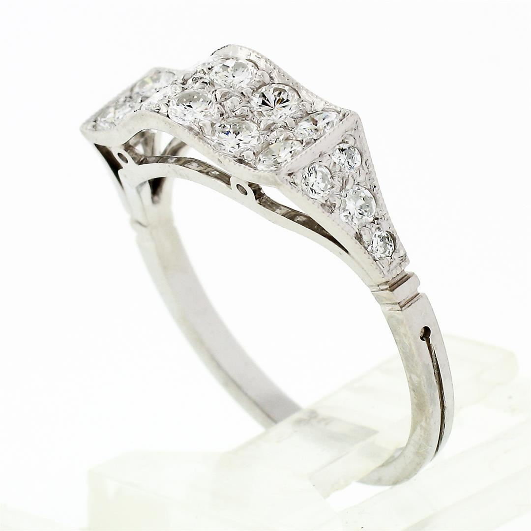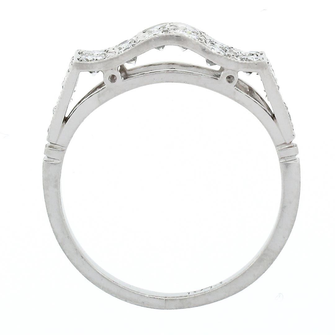 An art deco solid platinum wave stack band ring, with 20 old transitional cut natural diamonds (F/G - VS1/VS2 ; 0.64ctw). The ring is size 6.0, weighs a total of 3.24 grams, and measures 5.5mm wide.