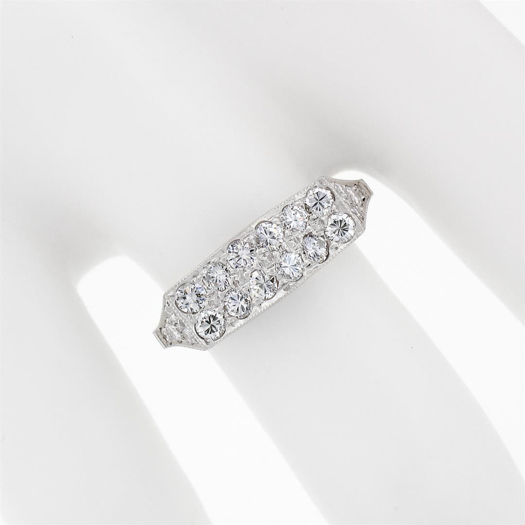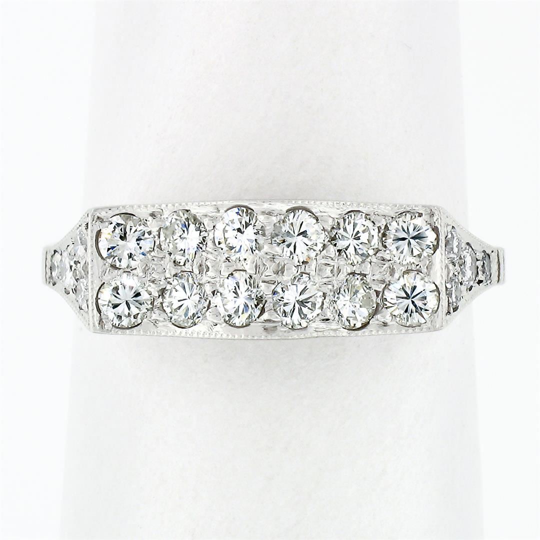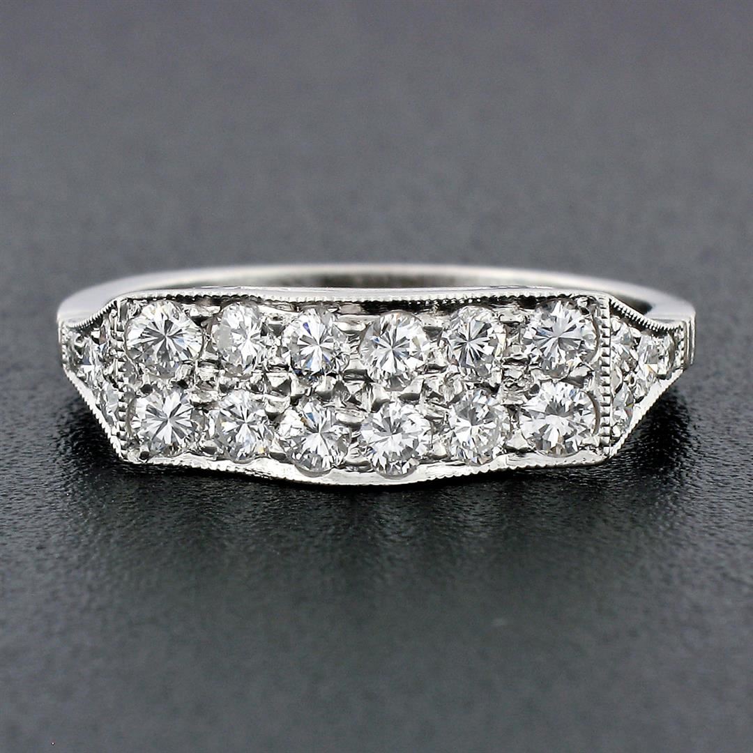 An art deco solid platinum wave stack band ring, with 20 old transitional cut natural diamonds (F/G - VS1/VS2 ; 0.64ctw). The ring is size 6.0, weighs a total of 3.24 grams, and measures 5.5mm wide.