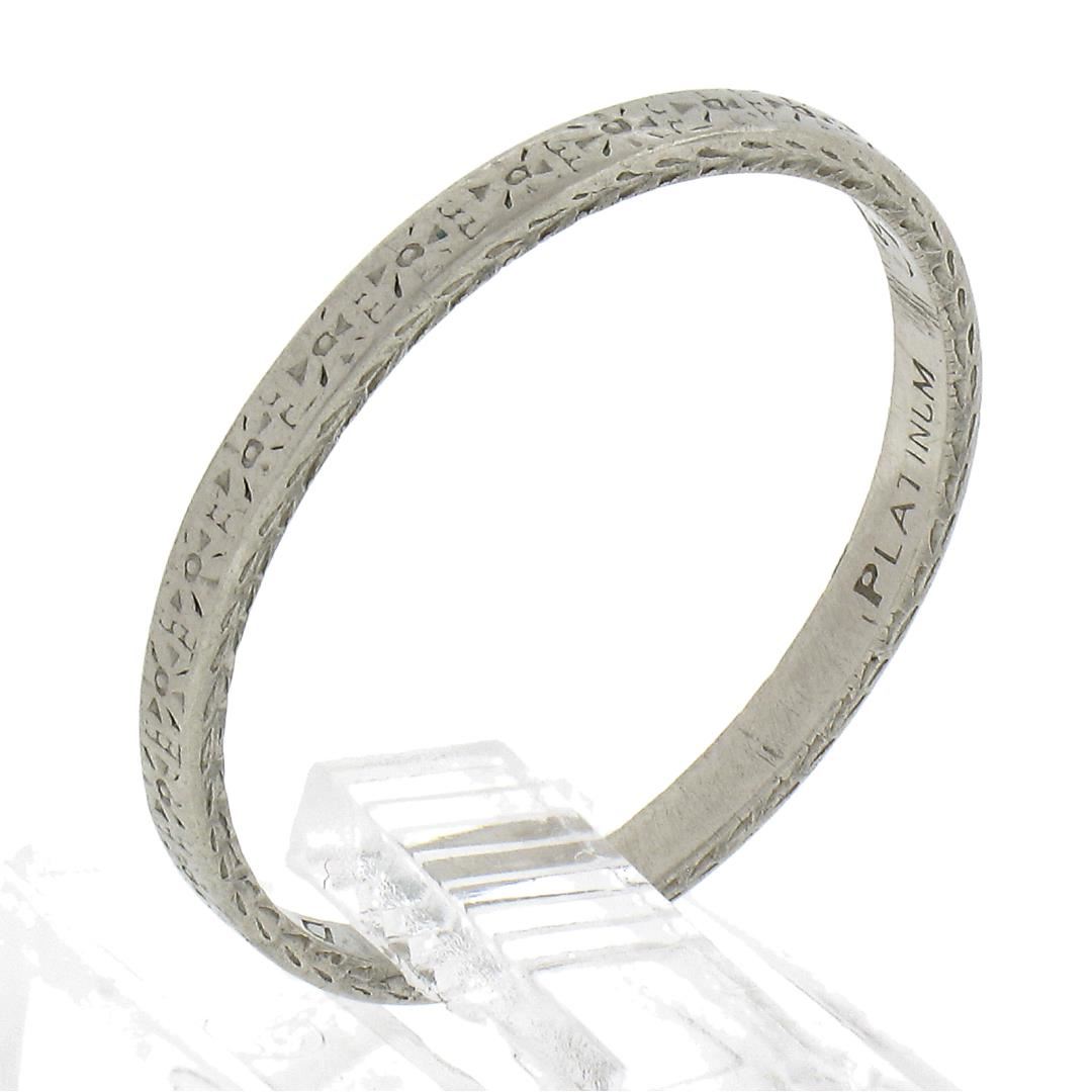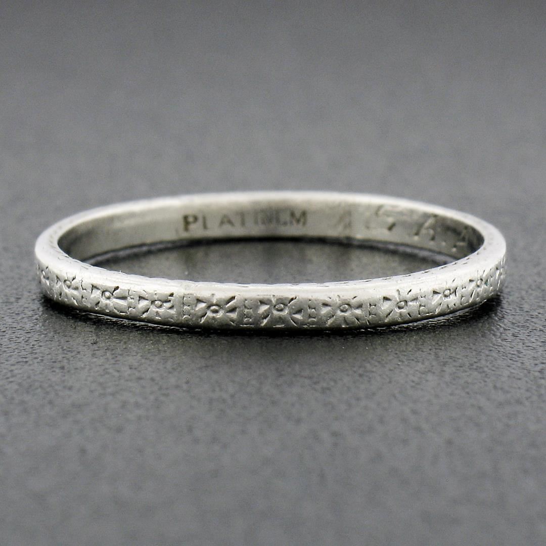 Antique Art Deco Platinum 1.9mm Engraved Textured Wheat Work Stackable Band Ring