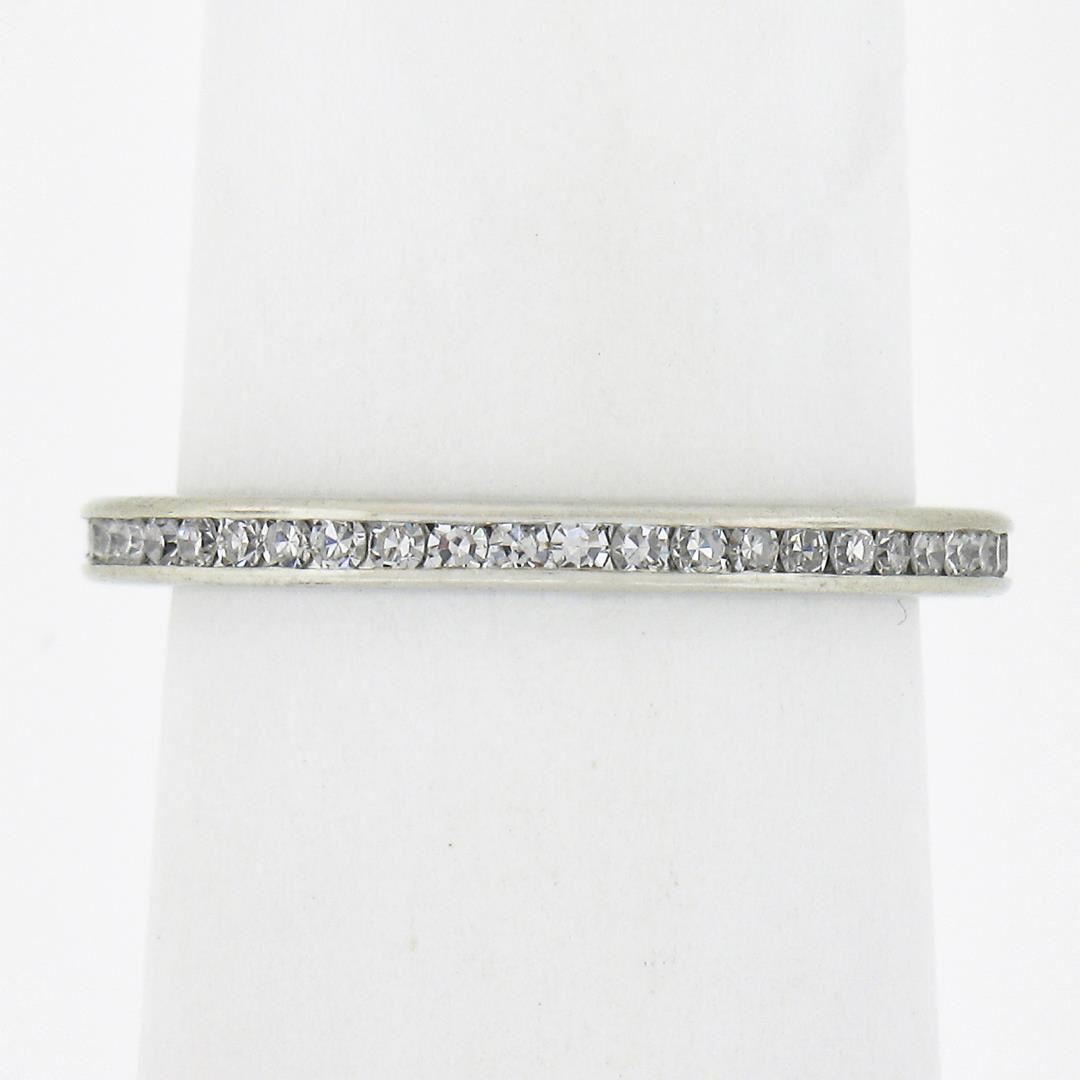 An antique solid paltinum band ring, with 50 single cut natural diamonds (F/G - VS1/VS2 ; 0.50ctw). The ring is size 5.0, weighs a total of 2.80 grams, and measures 2mm wide.