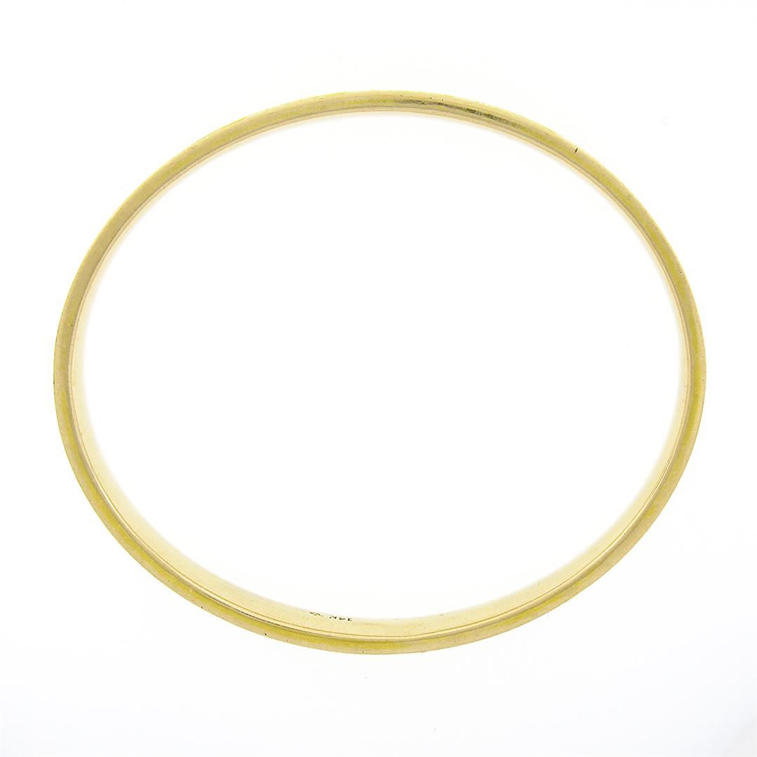An antique solid 14k yellow gold bangle bracelet. It weighs a total of 12.44 grams, measures 7.7mm wide, and measures 7 inches in length.