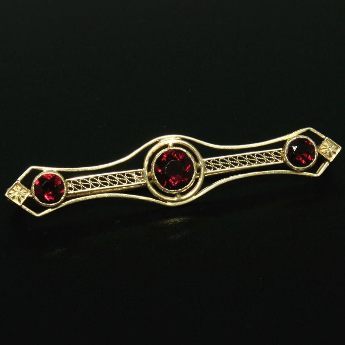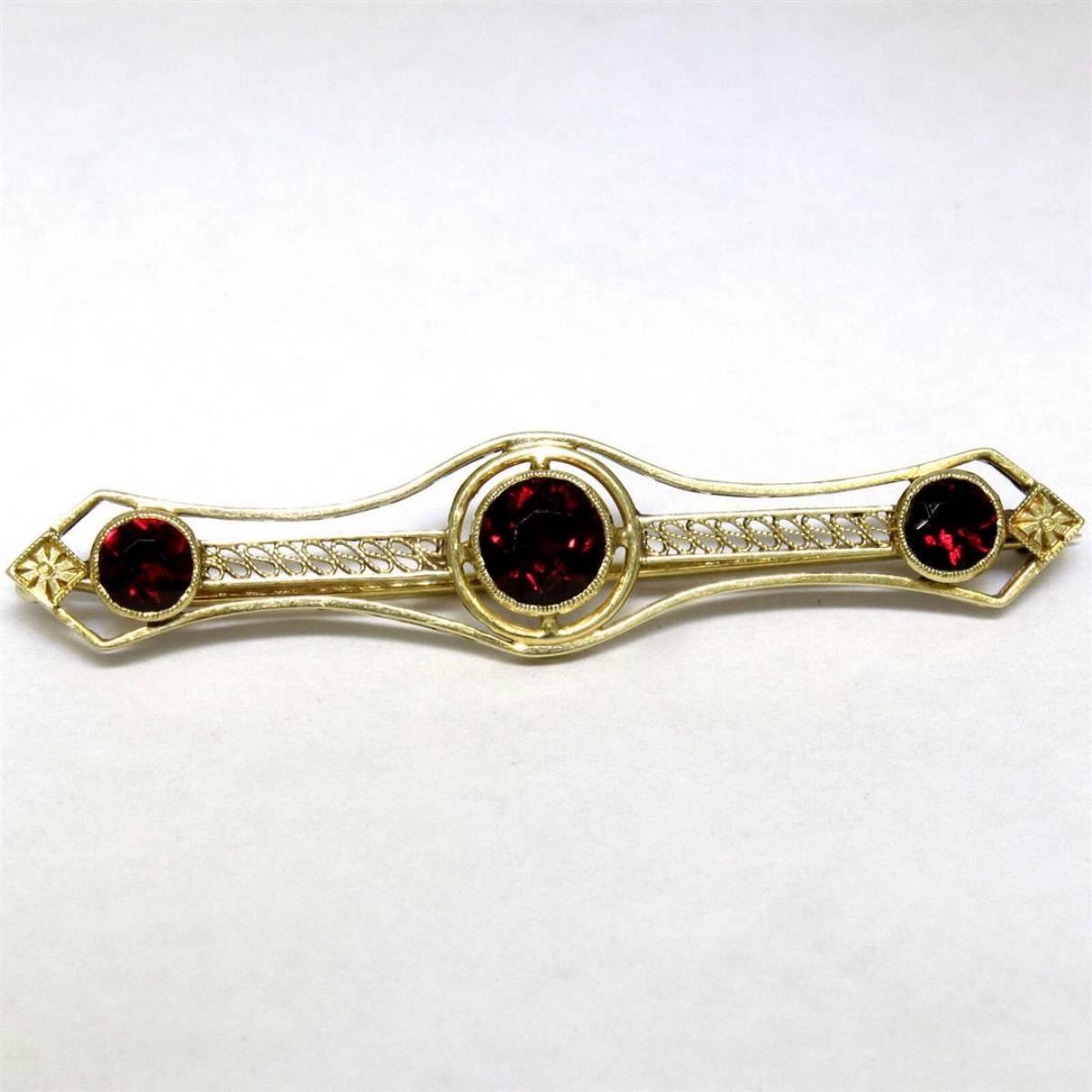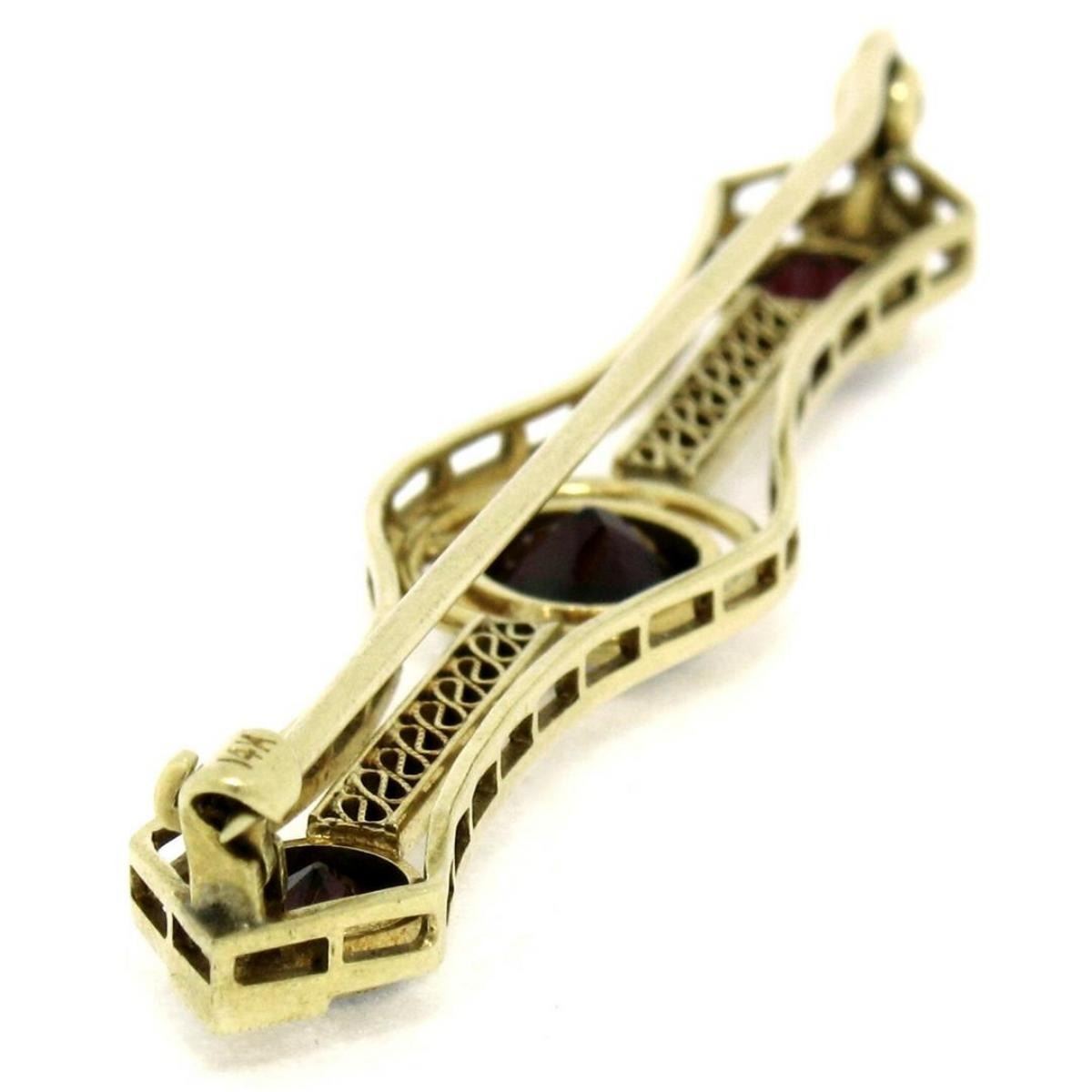 Antique Art Nouveau 14k Yellow Gold 2.20 ctw Old Round Garnet Filigree Bar Pin B