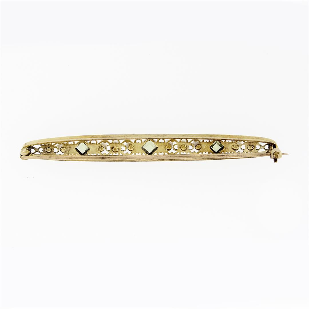 Antique Art Nouveau 14k Yellow Gold Peridot Seed Pearl Open Work Bar Pin Brooch