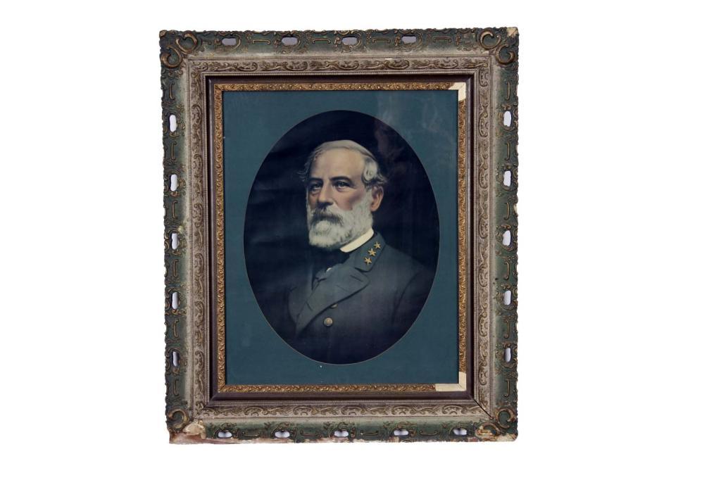 Antique Art Print Depciting Robert E Lee with oval matting, in original frame which has some losses.