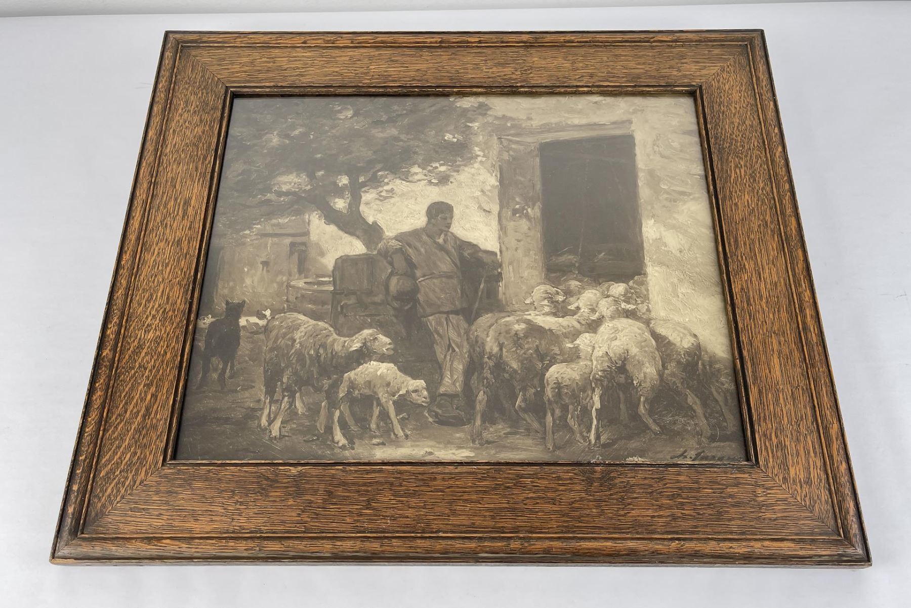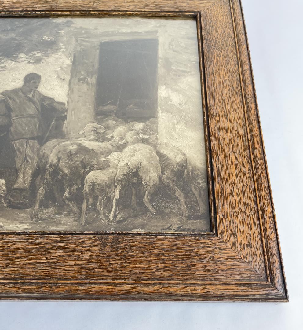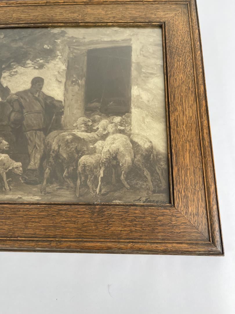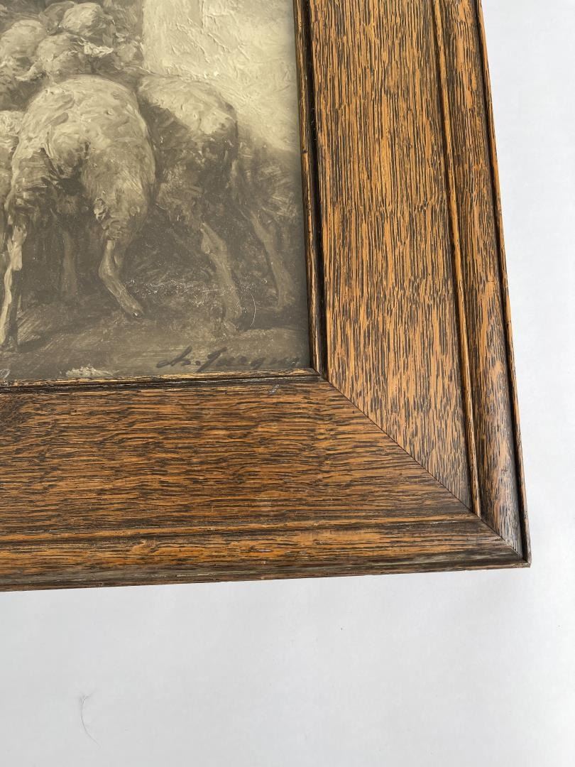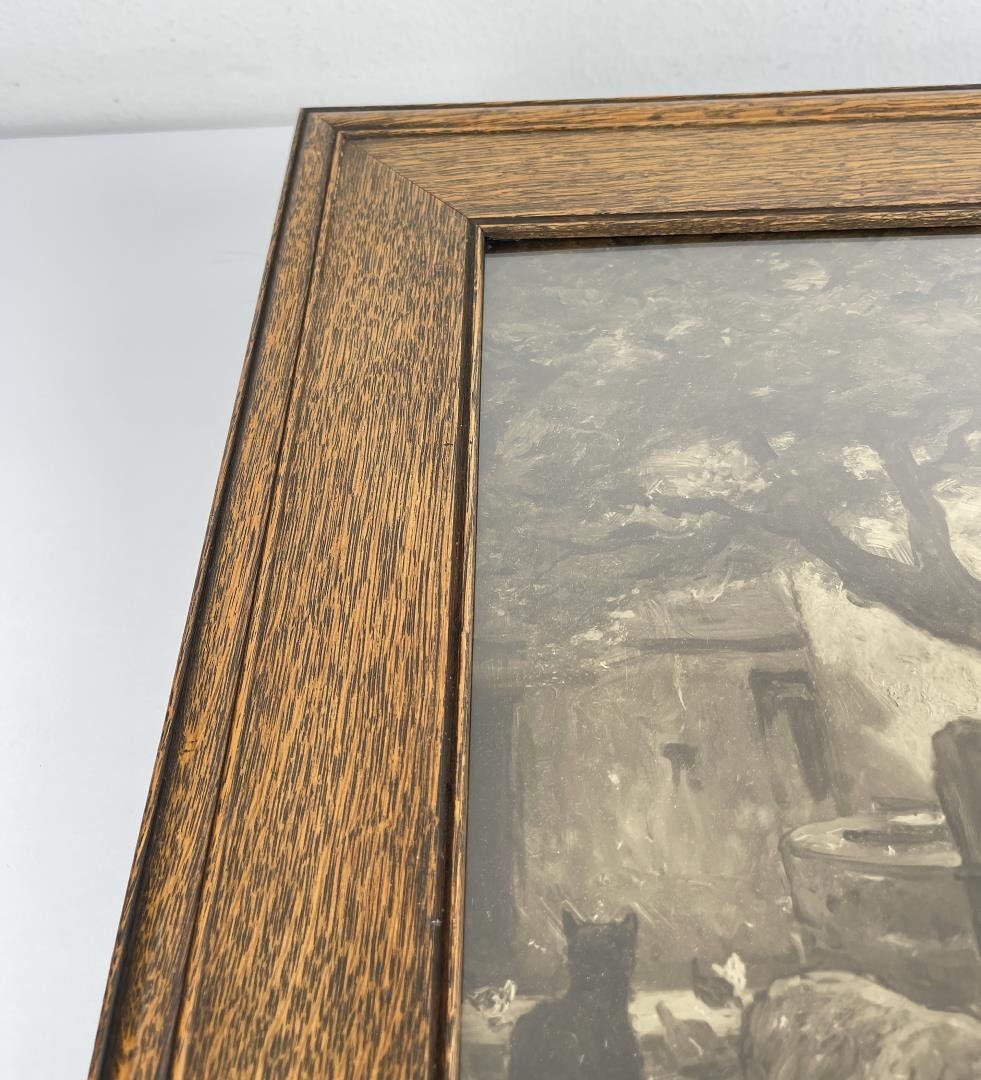 Nice old print in Oak frame. 20" by 23.5" framed. Wonderful old frame, could easily be repurposed for another period piece of art.