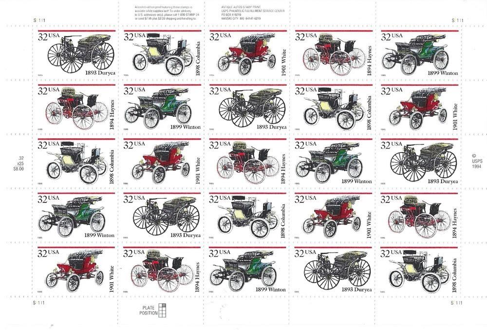 USPS Antique Autos Car Twenty Five 32 Cent U.s. Postage Stamps 1994 Scott 3019-23