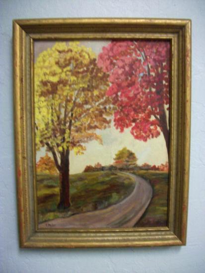 Beautiful/Colorful Antique Autumn Oil on Artists Board (10x14in) signed "C. Millet" (lower Left). Talented Color Usage and Details. Unique Style. Painting due to age has some very slight specks of paint loss only noticeable under close observation. Painting was acquired without history.