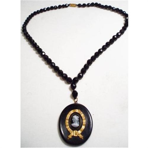 <tr><td>Title:Antique BLACK Enamel cameo DROP Necklace</td></tr>