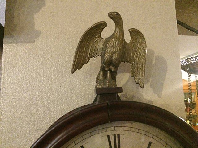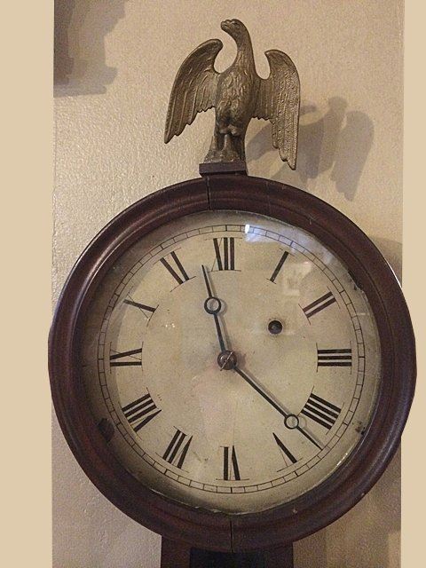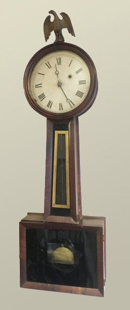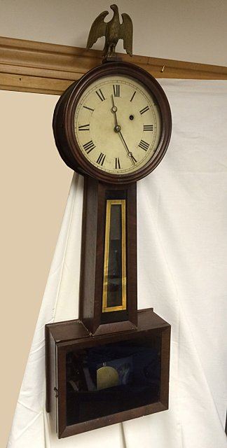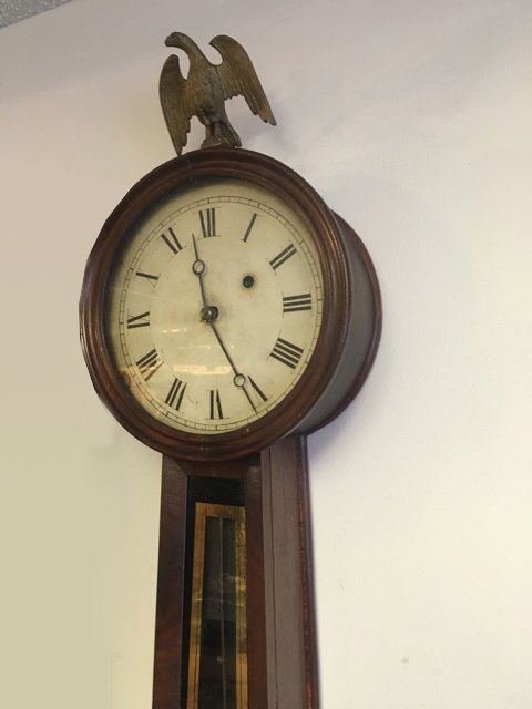 Early 1800's, weight driven Banjo Clock nice glasses, eagle finial (has crack), attributed to George Hatch, Attleboro, Mass. (c.1840-1800s)