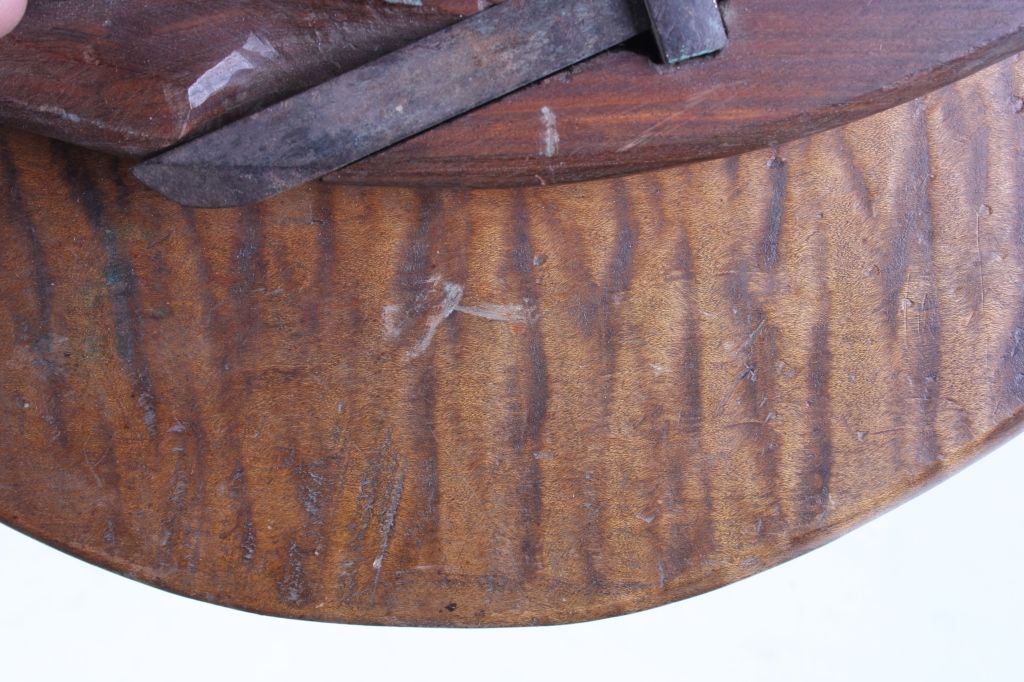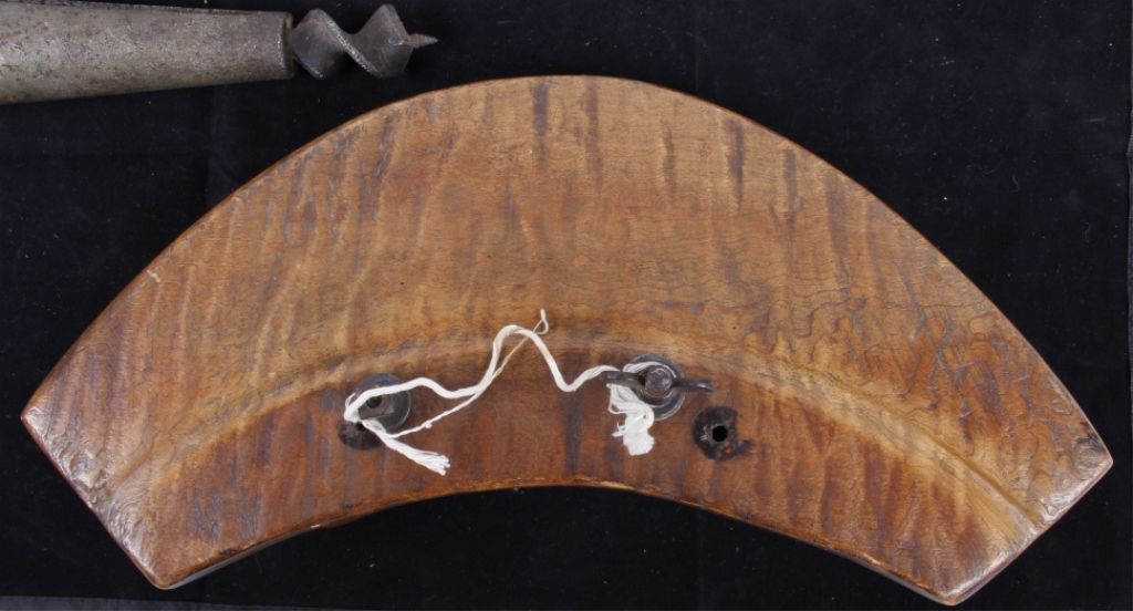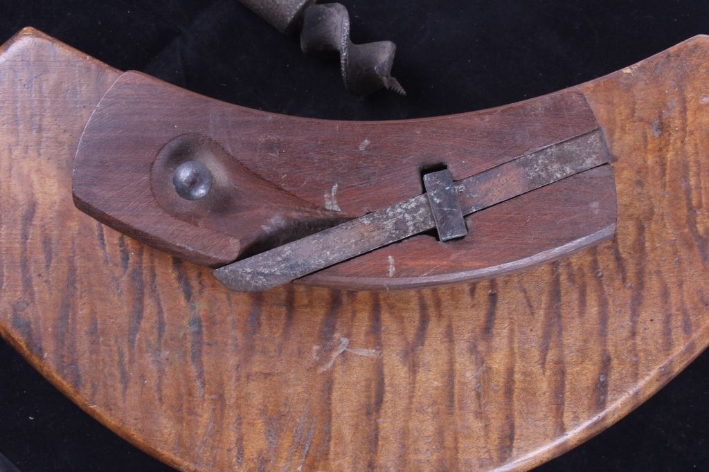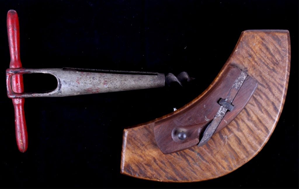 The lot shows two original antique tools including: The wood plane used to grove the inside of the barrel and the other tool was used to make the spout hole. Each measures 10"x13.5" and 7.5"x15"