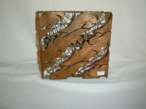 Hand made, 7.25" square, antique copper Batik Fabric Chop from Indonesia. Batik Fabric Chops are used in the process of hand batiking Indonesian fabrics. Cloth is dyed in a series of repeated waxing and dying steps to produce breath taking results that range from minutely detailed images to bold and colorful abstract expressions.