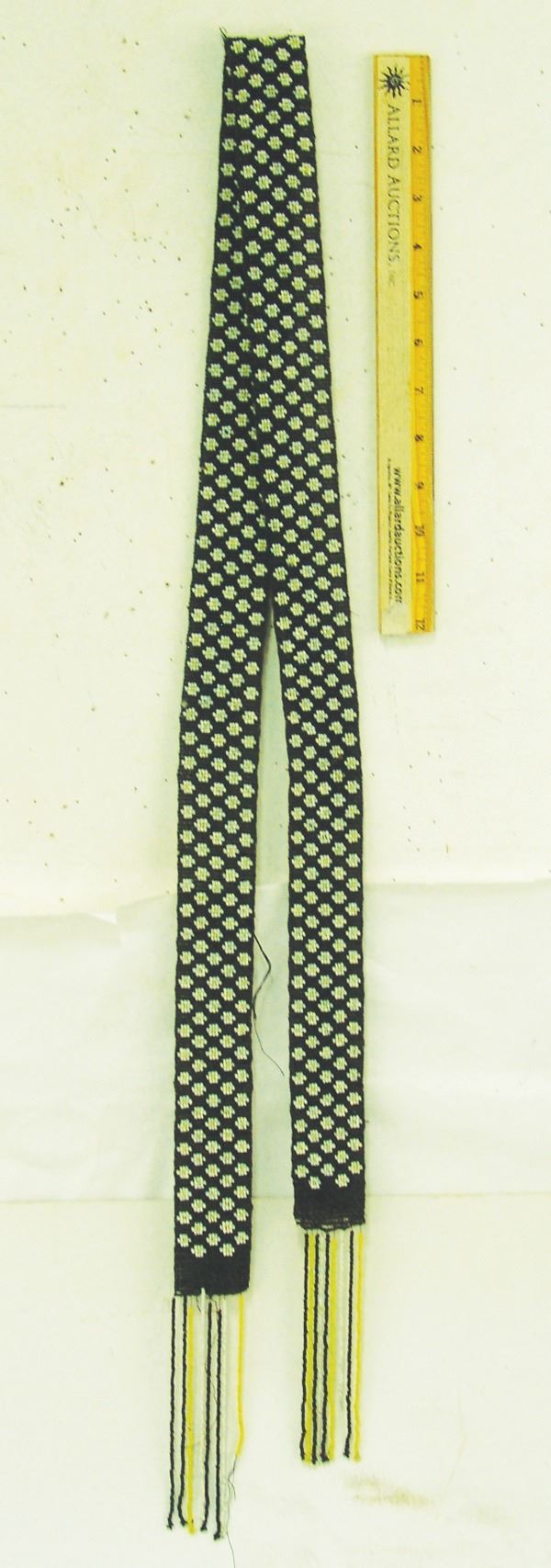 Extra large, 20" x 14" ryker mount containing loomed and flat beaded belts, bands, sashes. Good condition, some with minor bead loss/damage.Early/Mid 1900sSmallest 12"