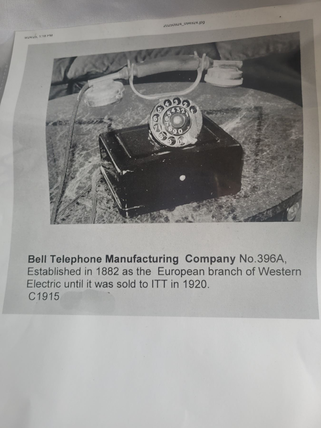 No. 396A European branch of Western Electric until it was solt to ITT 1920. Phone c1915. Pickup at 9 am