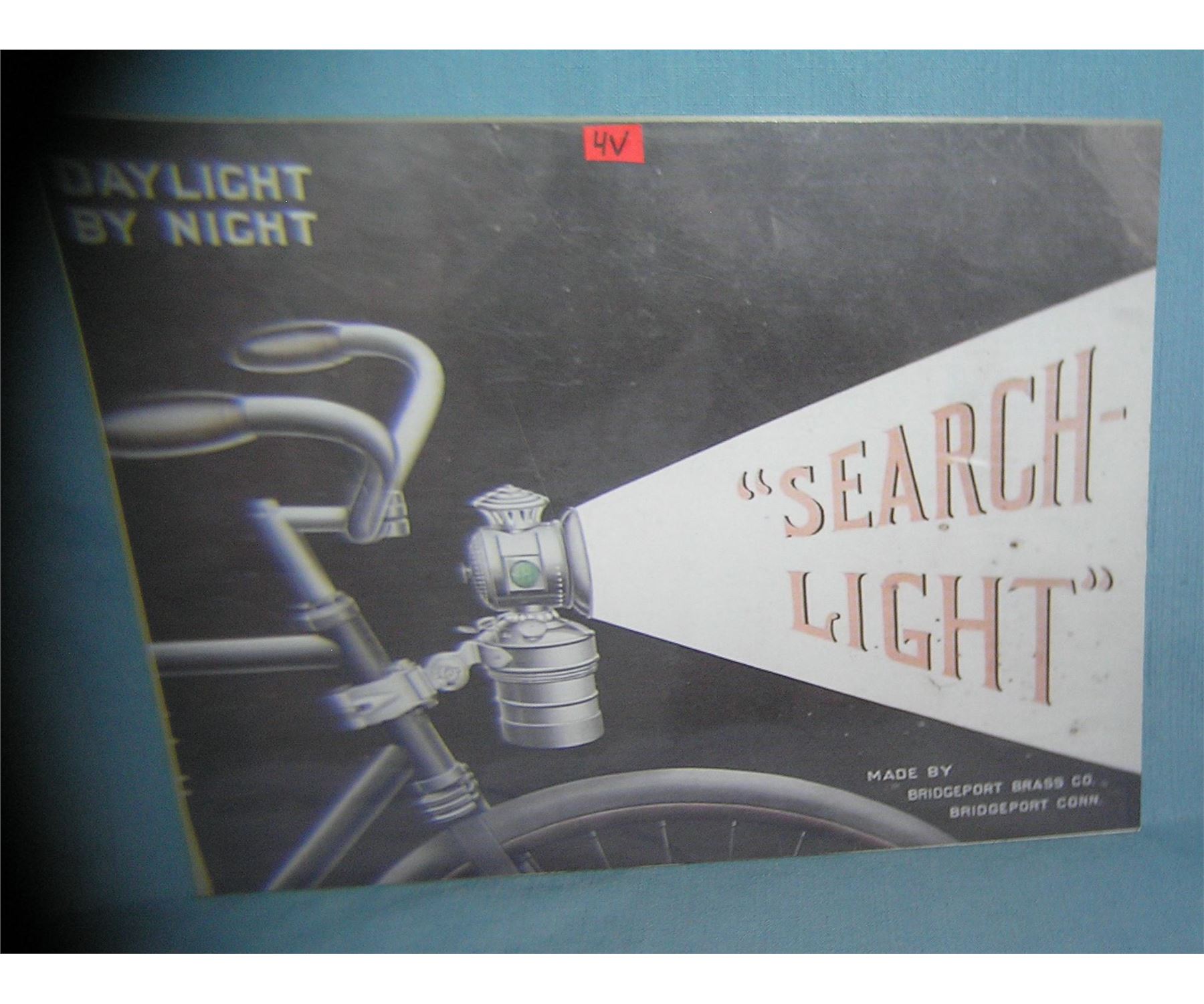 Antique Bicycle Search Light retro style advertising sign 12 inches by 16 inches est. value $40.00-$50.00