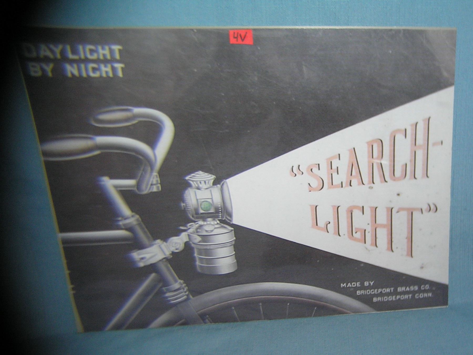 Antique Bicycle Search Light retro style advertising sign printed on PVC hard board these signs are auctioned for there decorative and display purposes 12 inches by 16 inches est. value $50.00-$60.00
