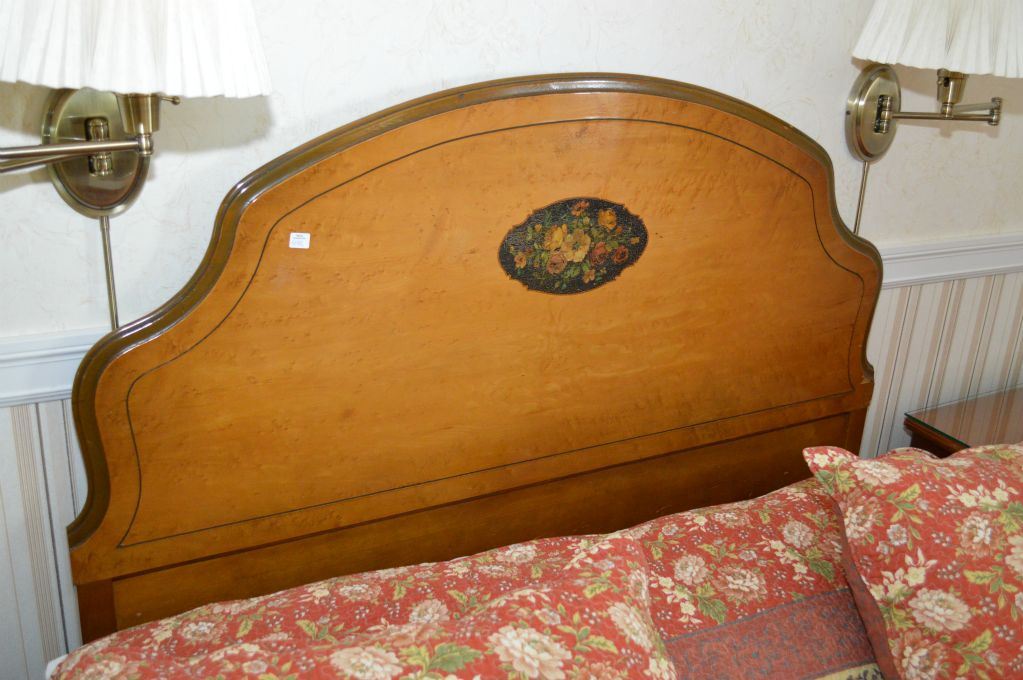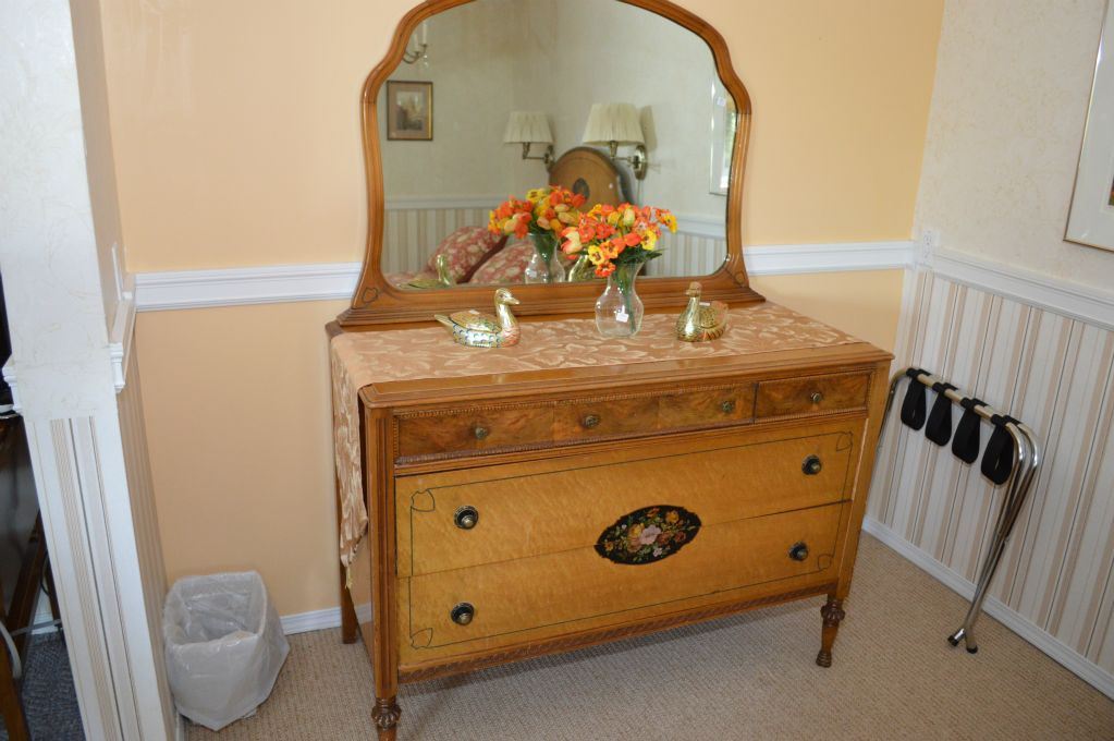Antique Birdseye maple five drawer mirrored dresser and double sized headboard with original finish