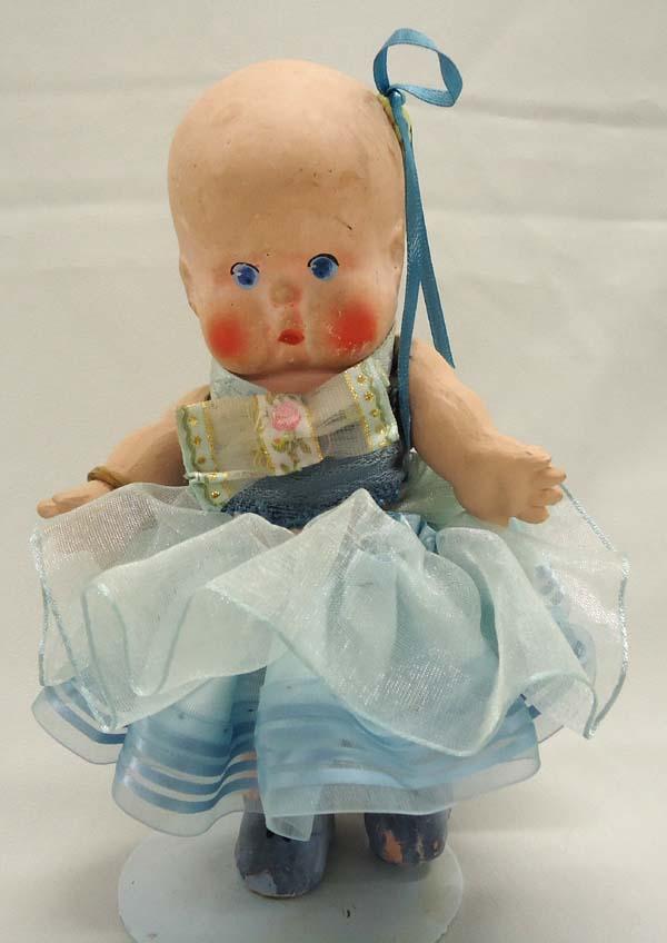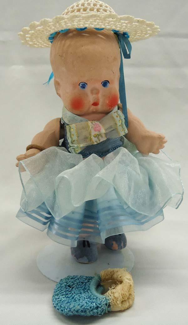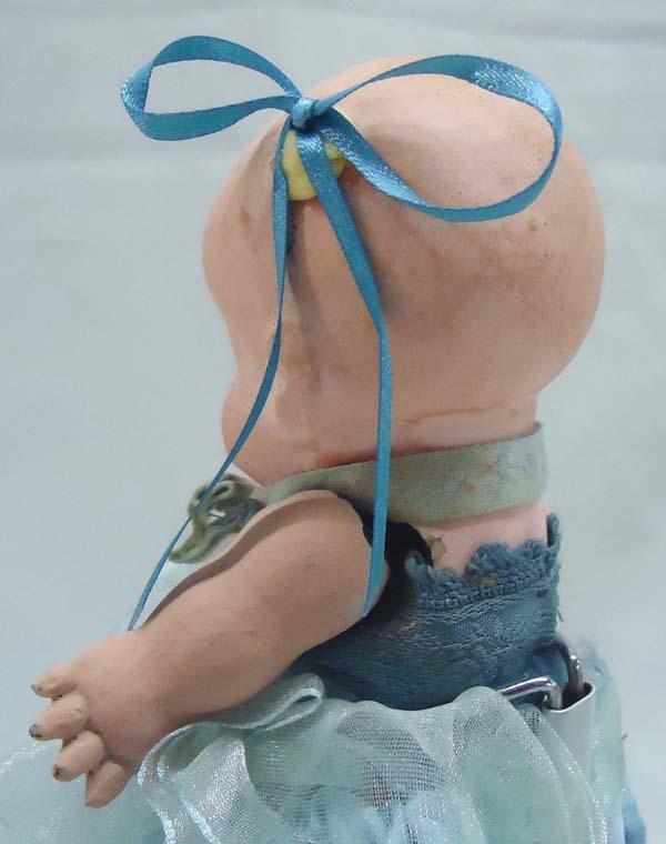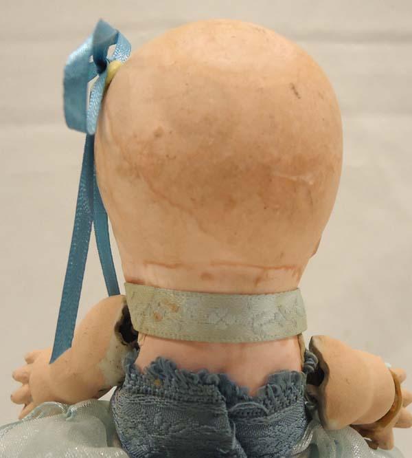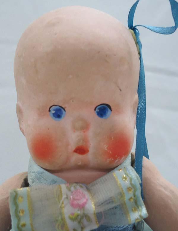 Antique Bisque/Chalk Doll. Hinged arms, stationary legs, hand painted face. Measures approx. 6.5''. SHI $20.