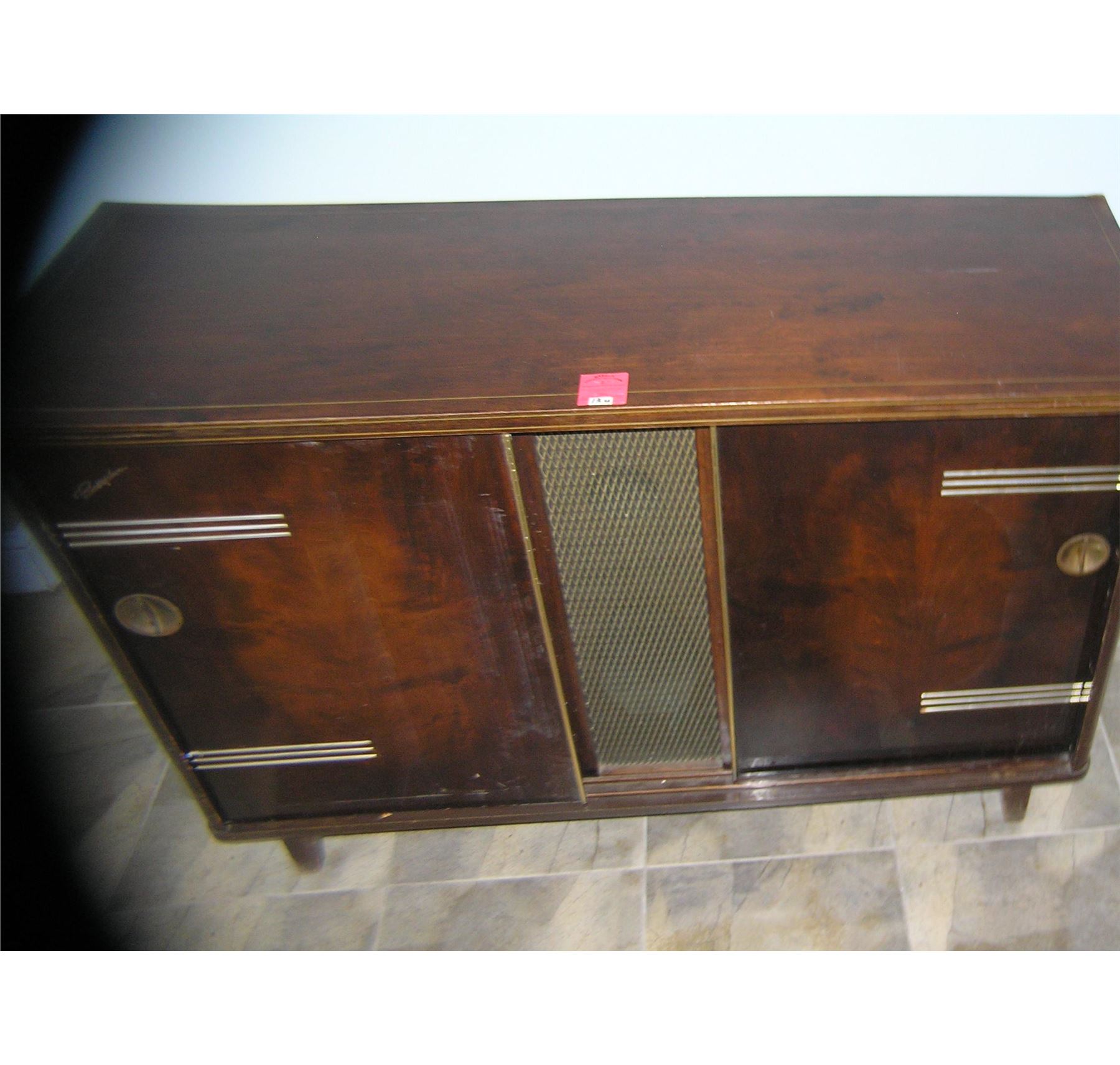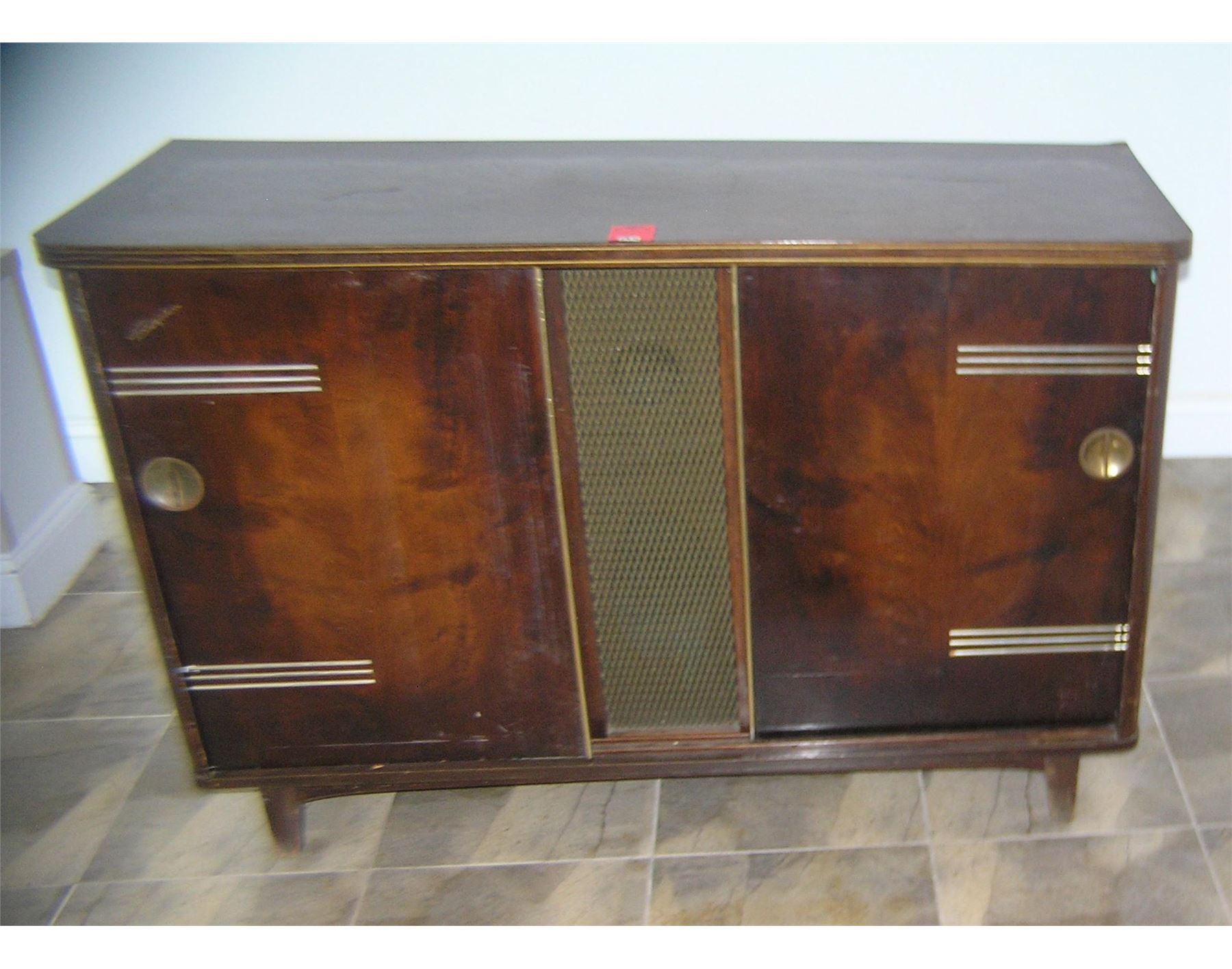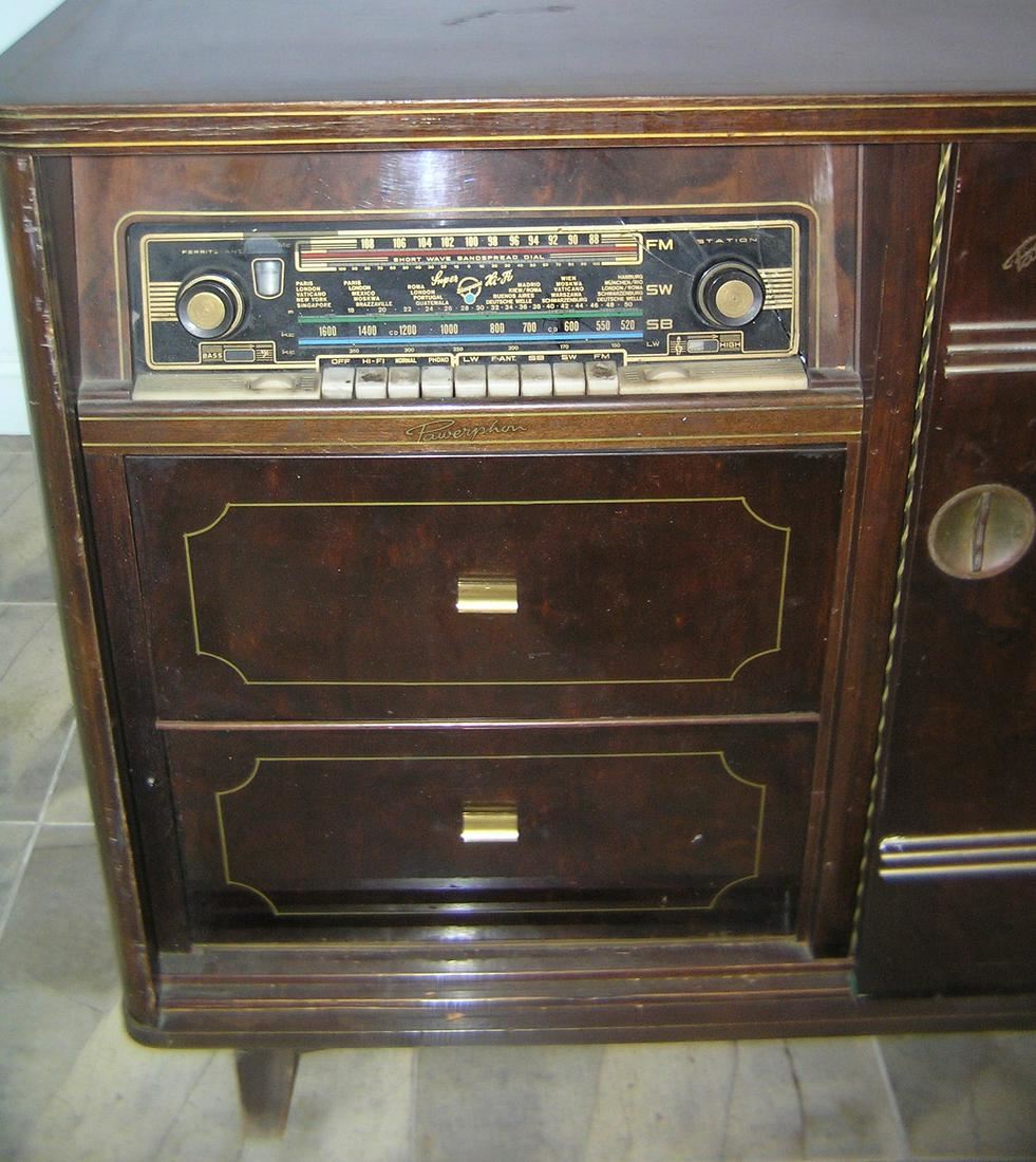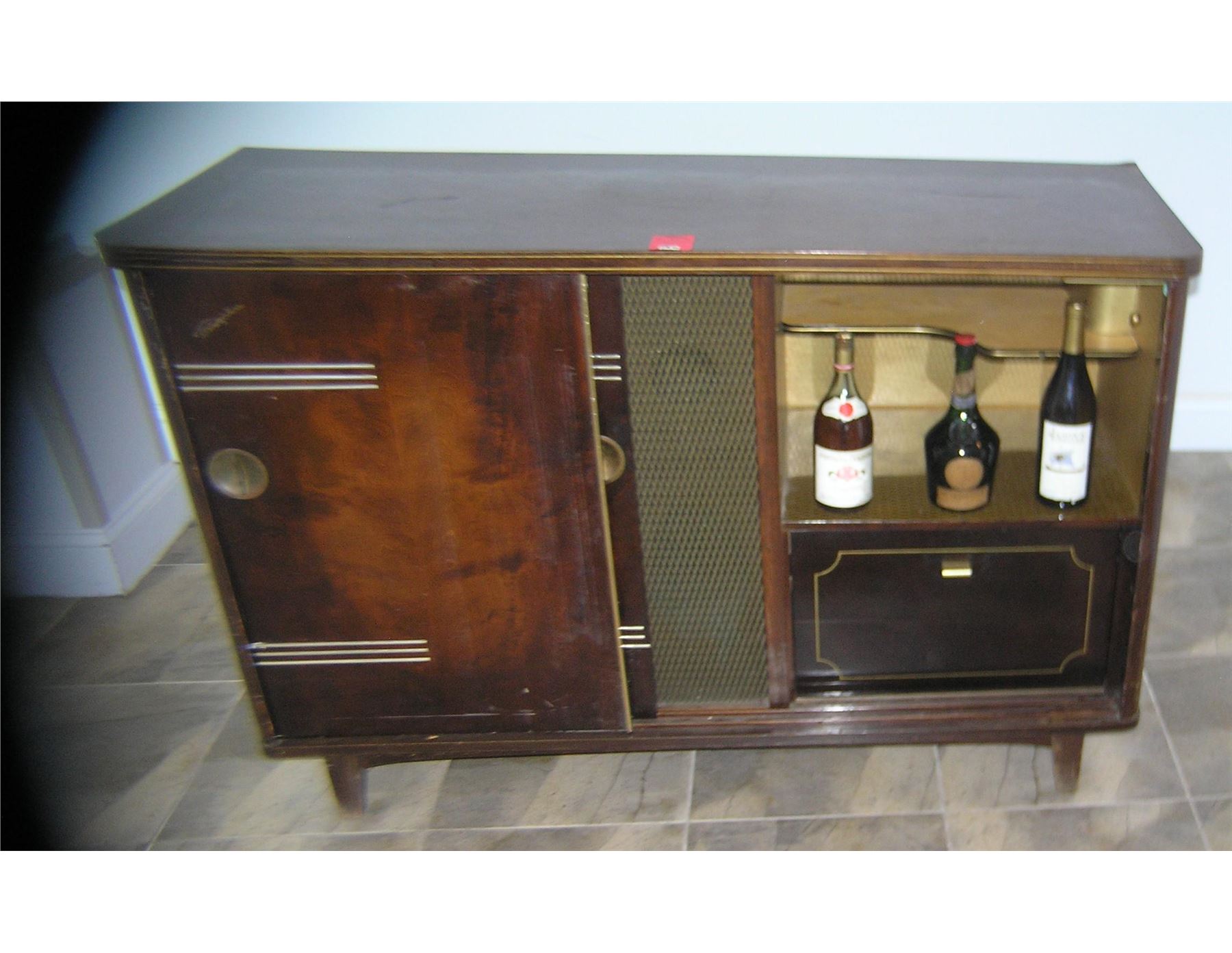 Antique Blaupunkt stereo system and bar unit console circa 1940's walnut cabinet with gold leaf trim condition as found in a local Long Island estate est. value $400.00-$500.00
