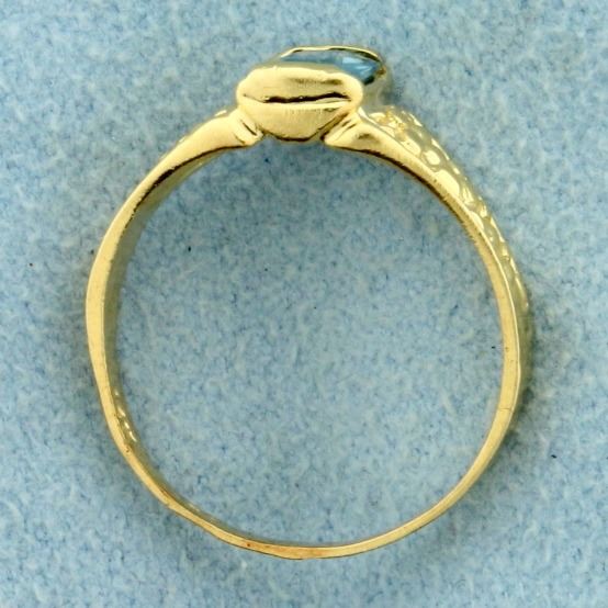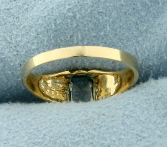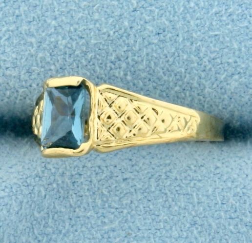 In 14K Yellow Gold. Contains a natural 6x4mm emerald cut natural blue spinel gemstone with bright light blue color and excellent clarity. Size 4 1/2. 1.3g