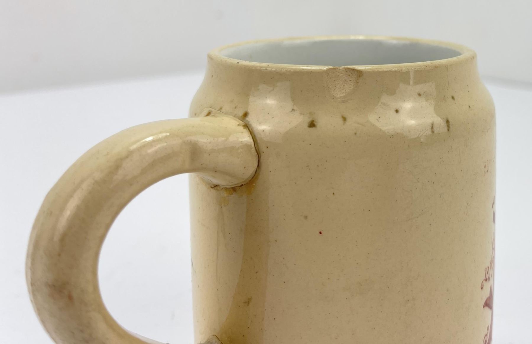 Very nice old stein. Rare. Handle has been broken and glued on at some point.
