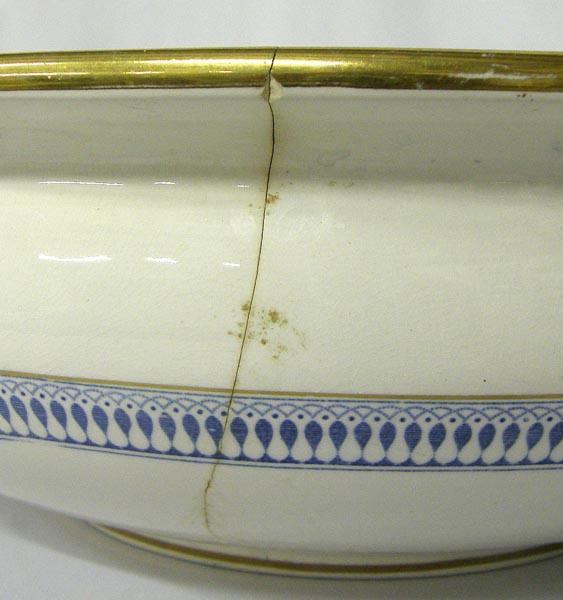 Antique Booths English China Commode Set, Missing the Pitcher. Large Bowl has a crack on one side and measures approx. 5''Hx16'' in diameter. Slop Jar is 3 pieces, the handle on the top has been glued, it measures approx. 13''Hx13''W. Chamber pot measures approx. 5''Hx10''W. Buyers Pay Actual Shipping and Handling Charges(see terms and conditions for more information)