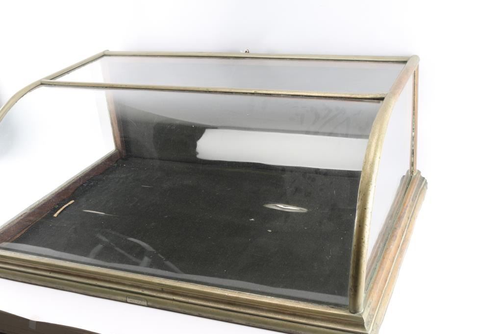Tabletop display case w/ label on front "Breneman & Co, Phil". 35"W x 13-1/4"H x 24"D. Old period repaint and modern re-line. Minor imperfections and aging. Very good overall.