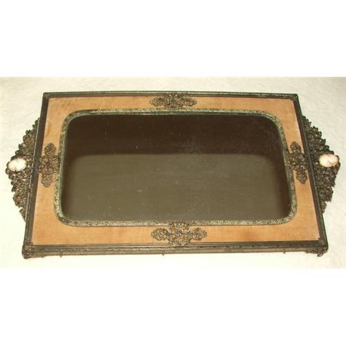 <tr><td>Title:Antique Brass, Cameo & Mirror Vanity Tray </td></tr>