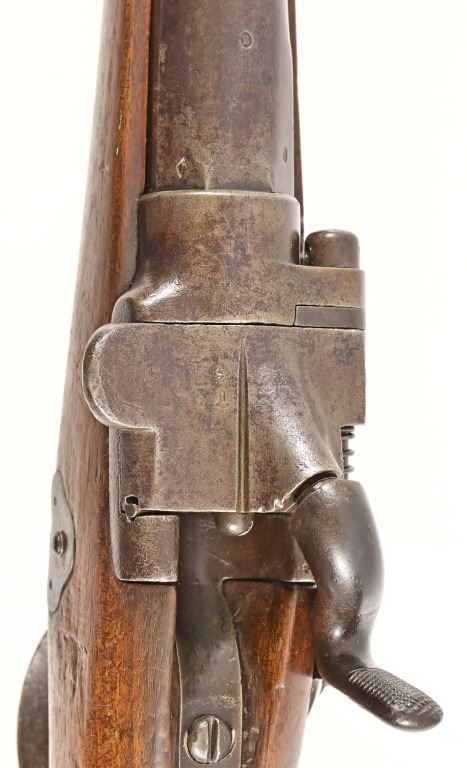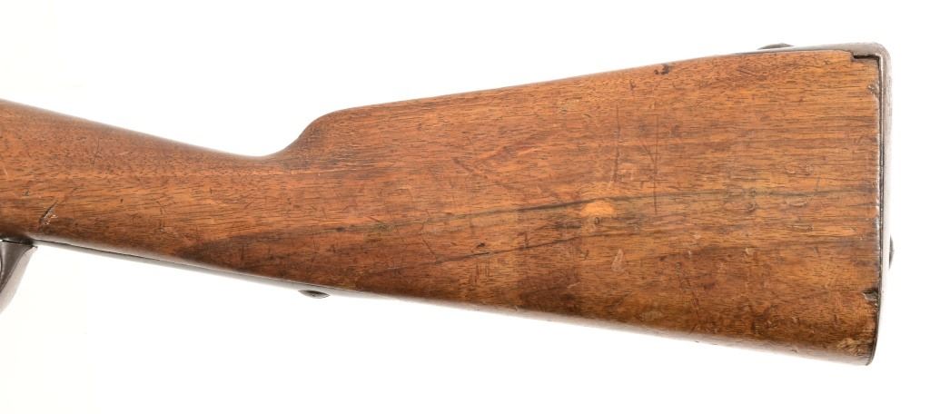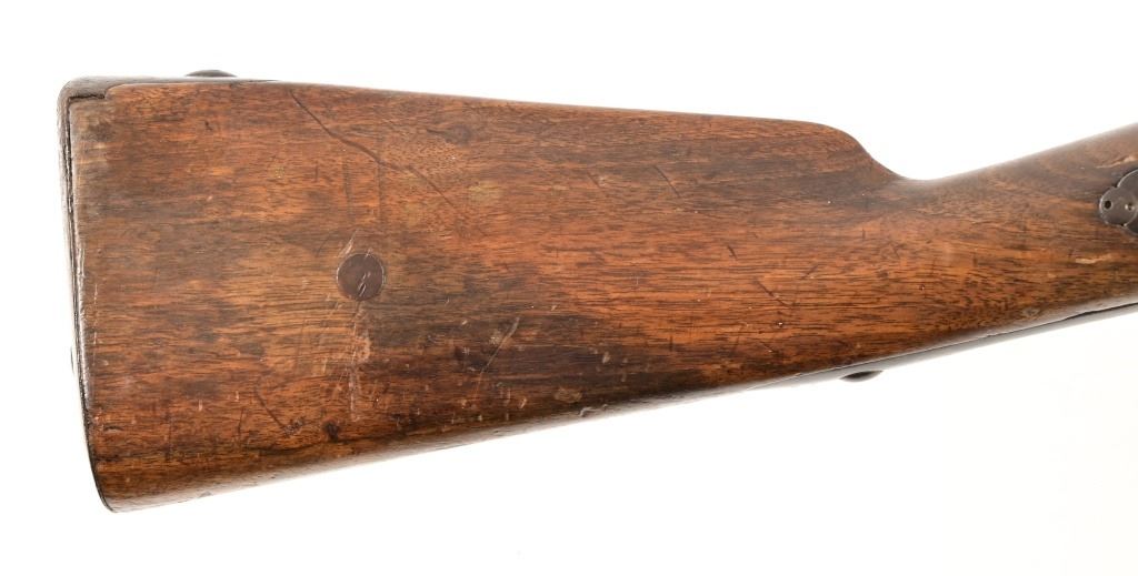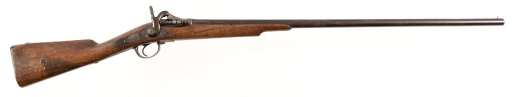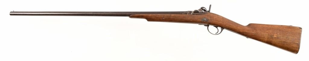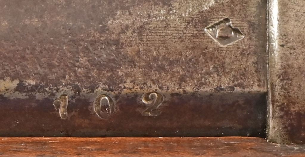 SN 102. 34 1/2" barrel, fair bore. Wood is solid except repaired crack in forend. Antique.