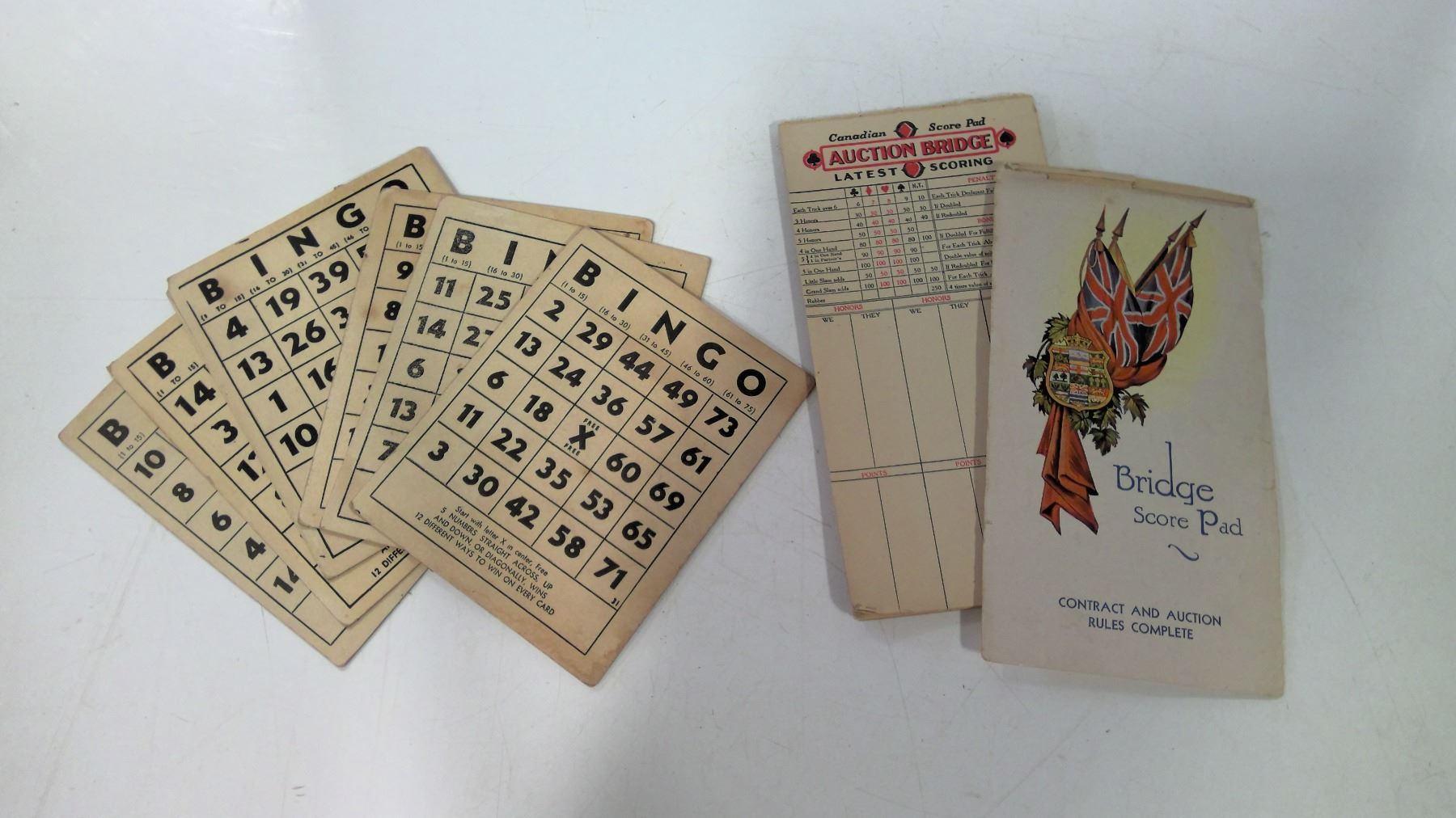 Antique Bridge Score Pad & Bingo Cards Lot
