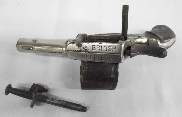 Antique British Bulldog Revolver, non-shooting, 41 rimfire bulldog, measures approx. 6''L x 1.25''W. Buyers Pay Actual Shipping and Handling Charges(see terms and conditions for more information).