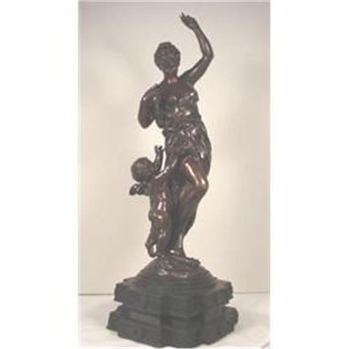 <table width="100%" border="0" cellspacing="0" cellpadding="4"><tr><td><em> </em></td></tr><tr> <td width="100%"> Lovely allegorical antique bronze sculpture signed Math. Moreau depicting a maiden holding an arrow out of the reach of cupid. The cherub is standing on one foot reaching as high as he can to retrieve his arrow that is being held high up out of his reach by the classically attired maiden. This subject was a popular theme for sculptors in the late 18 and early 1900's. The detail and quality of this sculpture is typical of the outstanding work produced by the family of Moreau sculptors of the late 19th and early 20th centuries. The sculpture is set into a very unusual two-tier, three stepped and floral decorated base. The sculpture measures from the bottom of the base to the top of the maiden's hand 20 inches. The diameter of the base is 7 inches. This is a lovely 2 figure cherub composition. The condition is very nice displaying all of its original medium brown patina. </td></tr><tr> <td> </td></tr><tr> <td>Reference #: 54771</td></tr><tr><td>Condition:Excellent</td></tr><tr><td>Year:19th Century</td></tr><tr><td>Title: Antique Bronze Lady with Cherub Math. Moreau</td></tr><tr><td>Location:Los Angeles, California</td></tr></table>