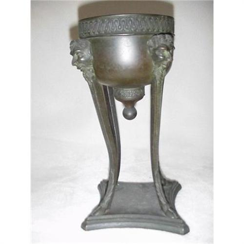 An antique bronze oil lamp base. 19th century, probably French. 11 1/4" tall x 5 3/4" at the base x 5" in diameter. Condition is good it does appear to be a bit crooked but can be straightened by the right person. If you can find the right oil font and burner to fit you will have a beautiful oil lamp. (6)