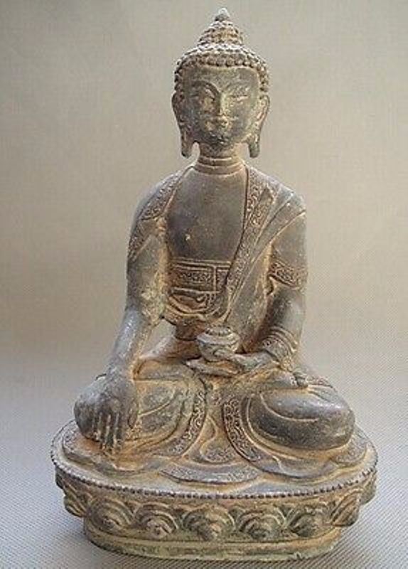 Antique Buddha Statue...Holding Divine Nectar in his one hand..height 7.5 inches....weight 2.2 lbs.